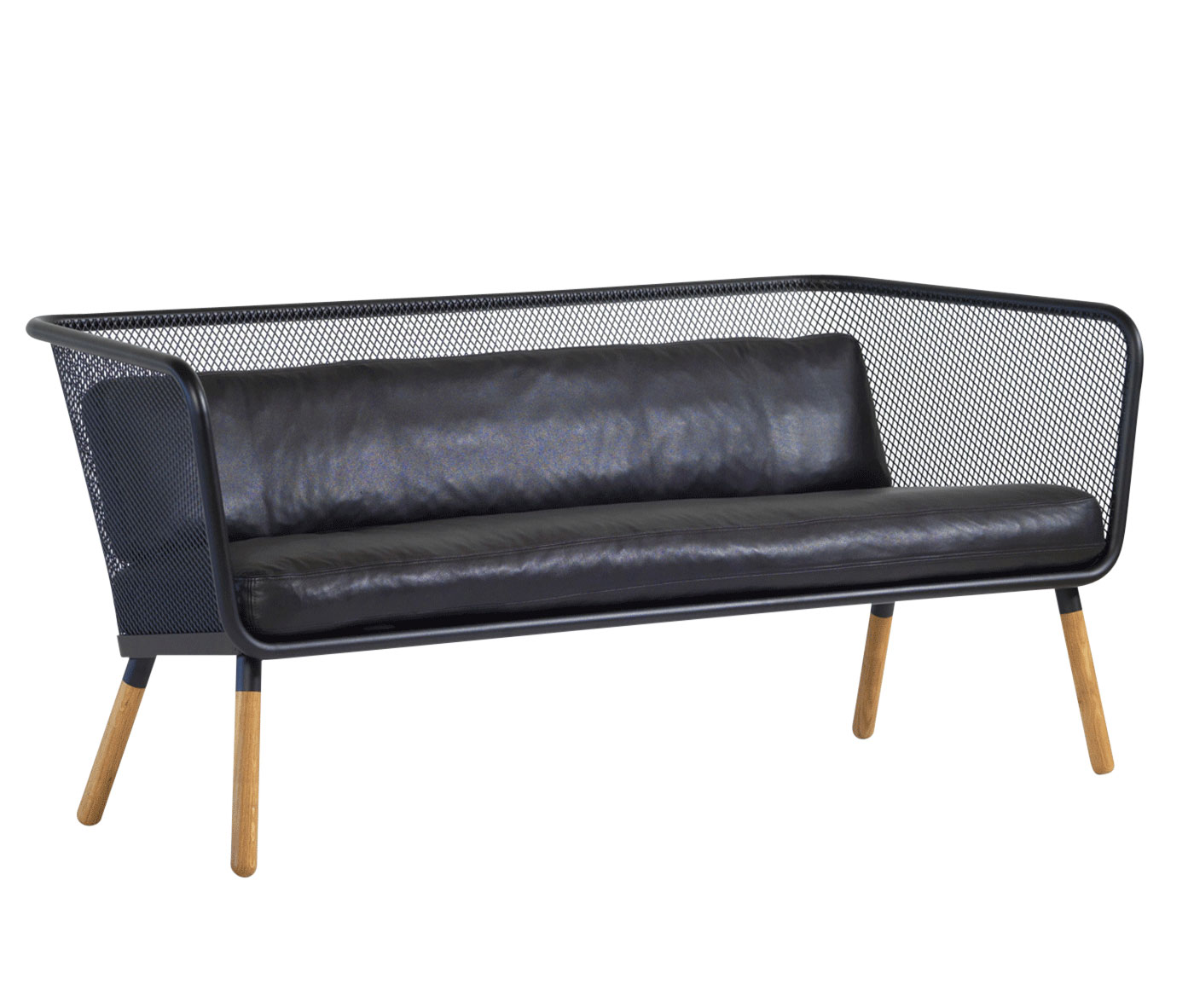 Honken _Small安乐椅和沙发。钢篮和绘腿配件管状钢和扁平金属板。涂漆钢,质地细腻,根据cc。2a或cc。2b。涂油的橡木腿。聚酯泡沫制成的座椅/腰垫和下部。座椅和靠背可翻转和盖在织物或皮革。皮革作为每立方厘米6b所示。可拆卸盖。