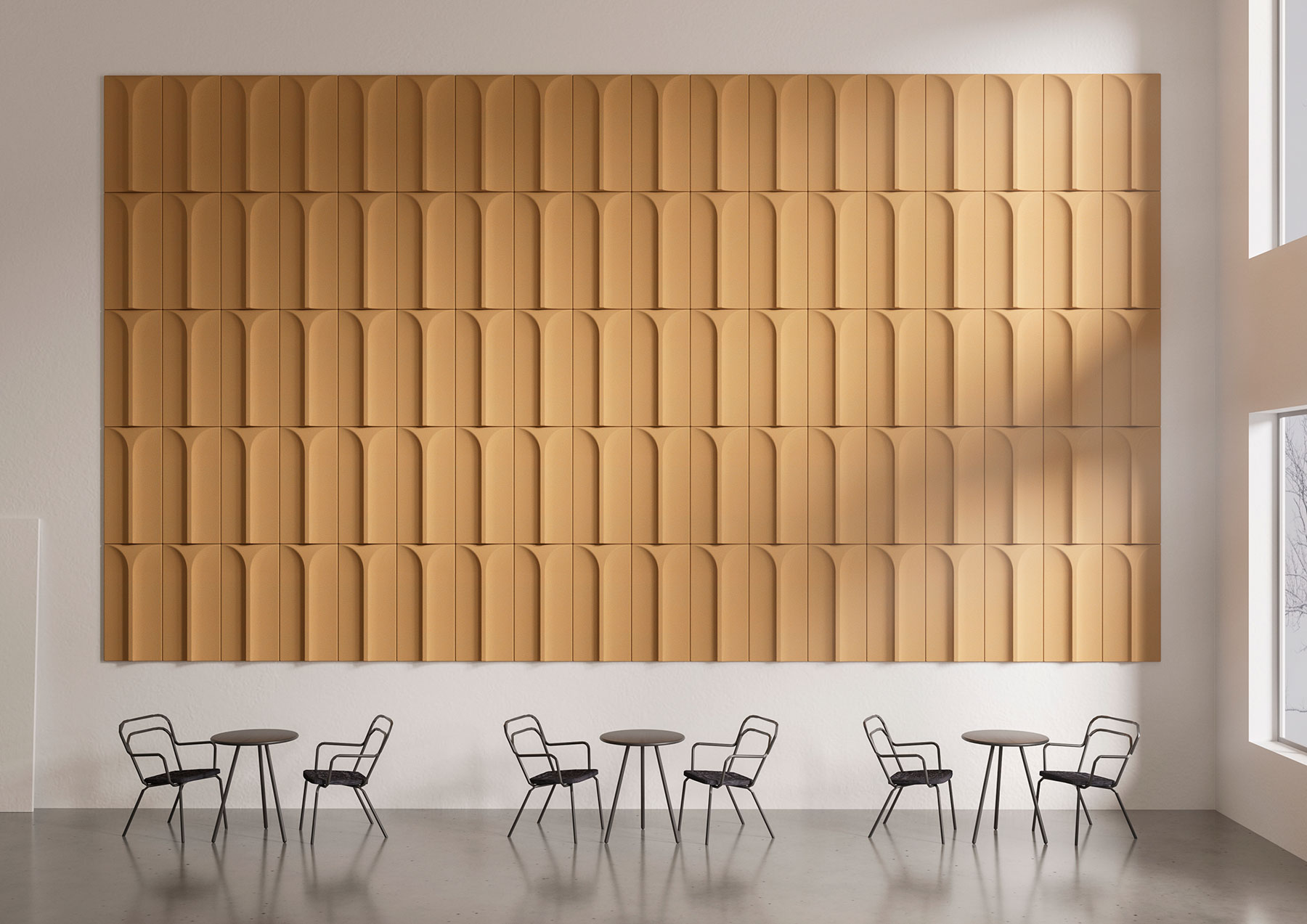 石材设计带来了第三个声音吸收到BLA站 弧由斗兽场在罗马商场的启发,可以在许多垂直和水平的配置中使用该面板刺激性偏转声音浮雕吸收声波,弧形墙规划设置在我们的网站上公布,并根据需要与声事实提供关于吸音值的信息可以结合起来。