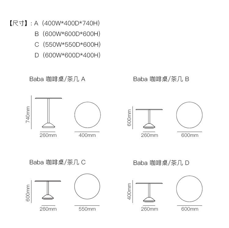 Baba 咖啡桌/茶几 系列尺寸/示意图