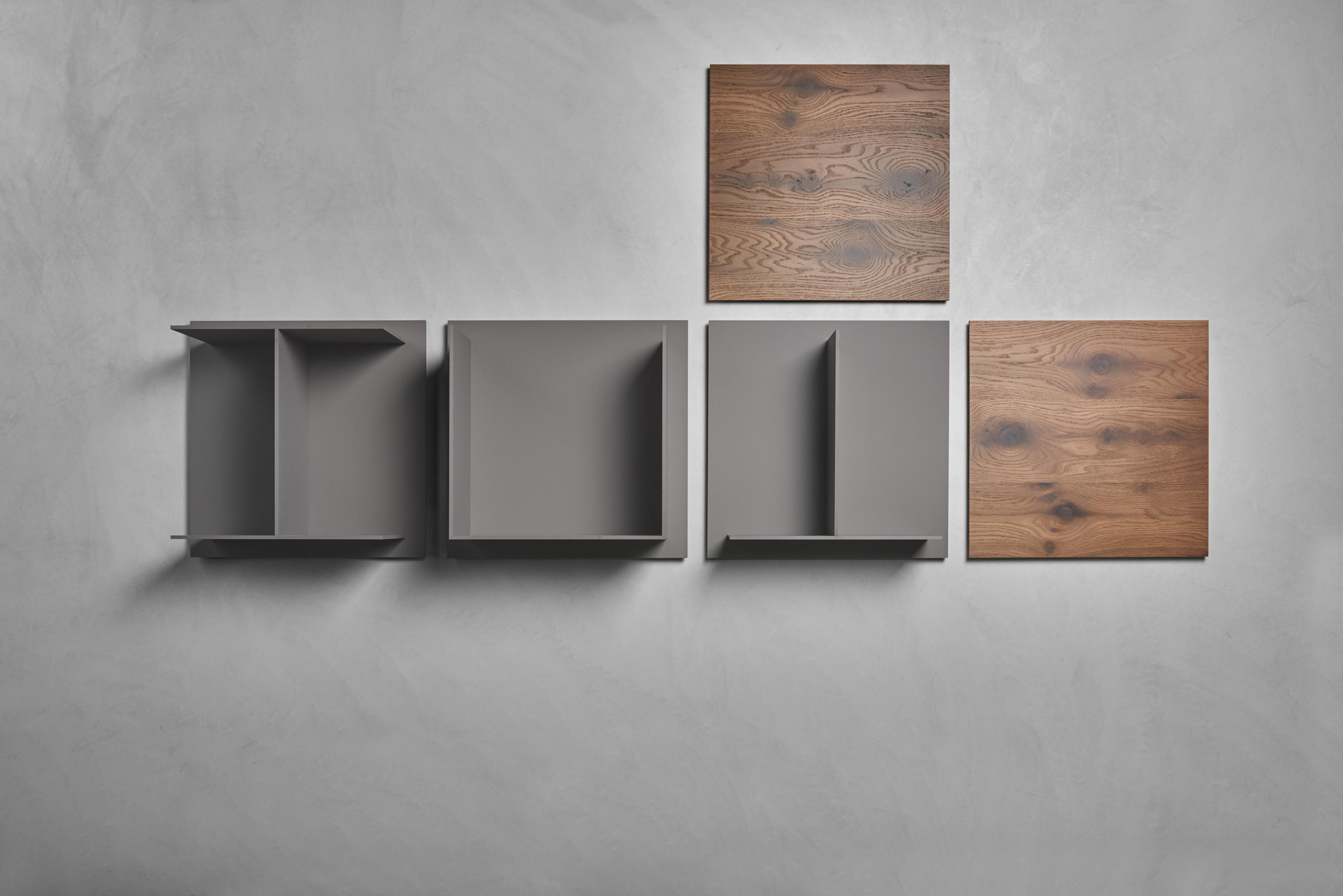 广场设有一个简单的设计,免费超级FL uous的,从装饰自成一家,其几乎没有侵入性和中性的设计可轻松的对话与其他标志或离散融合了各种产品。 它的存储功能是可见和隐蔽。广场一直研究,开发出的组合物的无数个具有显着的容量时的时间。以适应空间,并获取变化 的类型和表面处理 元件是在单色版本白色和中灰可用。 每个模块由覆盖上的音响breboard面板的正面为白色或中灰色Fenix层压板,背面为白色或中灰色聚合板。高压全色Fenix层压板货架,白色和中灰色。 ELEMENT X:简单面板 ELEMENT Y:带双层搁板的面板,深度18cm ELEMENT L:带有L形搁板的 面板,深度18cm ELEMENTT:带有T形搁板的面板,深度18cm ELEMENTC:带有C形搁板的面板,深度25cm ELEMENTH:带有H形搁板的面板,深度为25cm ELEMENTH:带有H形搁板的 面板,深度为25cm 某些材料还可以采用木材,黄铜, 再生石材和黑铁的材料版本:ELEMENT X:由纤维板制成正面用木头,黄铜,重建的石头或黑铁覆盖,背面用白色或中灰色聚合板覆盖; Z元素:由纤维板制成,正面用木材,黄铜,重建的石材或黑铁覆盖,背面用白色或中灰色聚合板覆盖。高压全色Fenix层压板搁板,白色和中灰色。