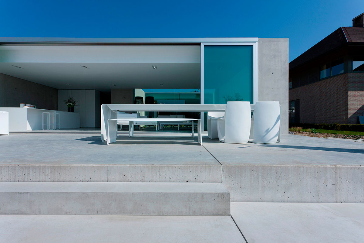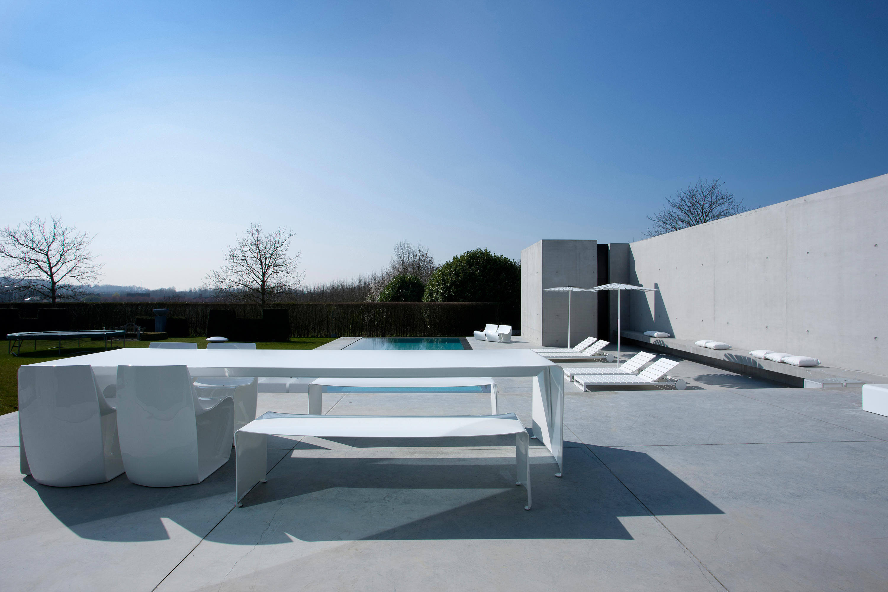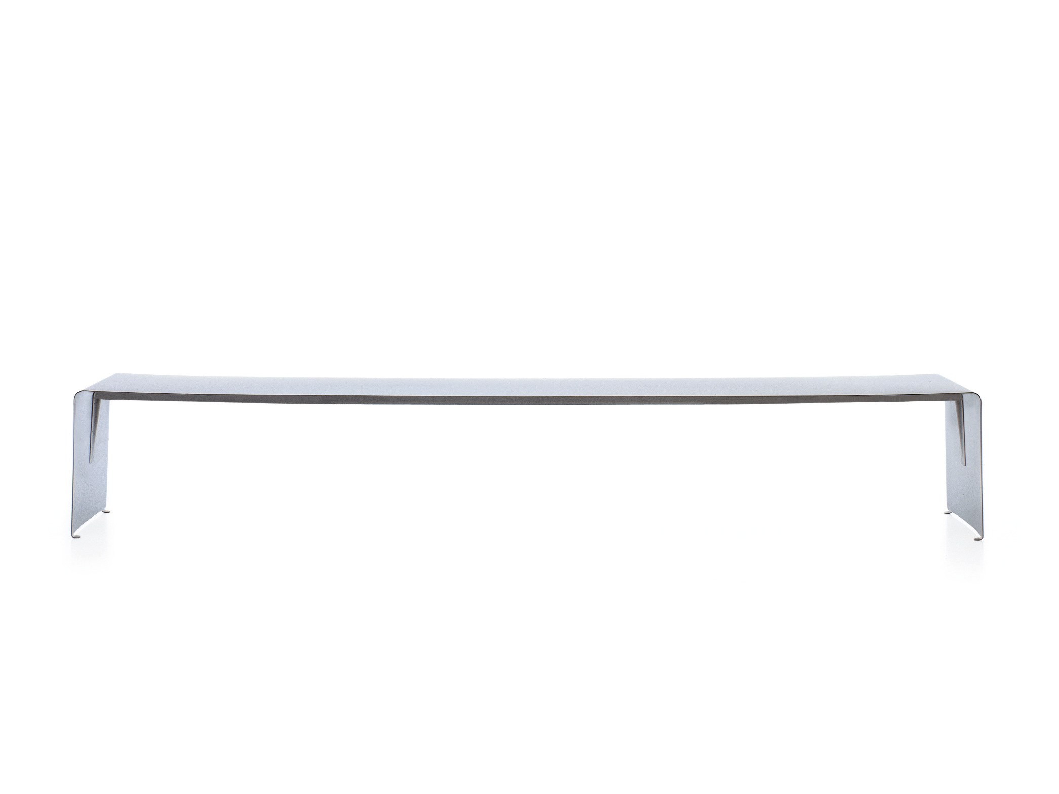具有弯曲的自然铝片制成表。 表面处理: •铝涂漆 •亚光白漆 •光泽白漆 除了确保表的横向和纵向稳定性,加强梁(在高度70毫米使用表格240厘米,高度95毫米(更大的尺寸)和支撑的L形轮廓使得可以根据尺寸制造厚度不同的零件,从而在视觉上进一步改进它们:在80厘米宽的桌子中,铝厚度为5毫米,在90厘米宽的情况下表中的铝厚度为6mm。 身高73厘米。最大长度4.40米 室外使用 该表也适用于室外。