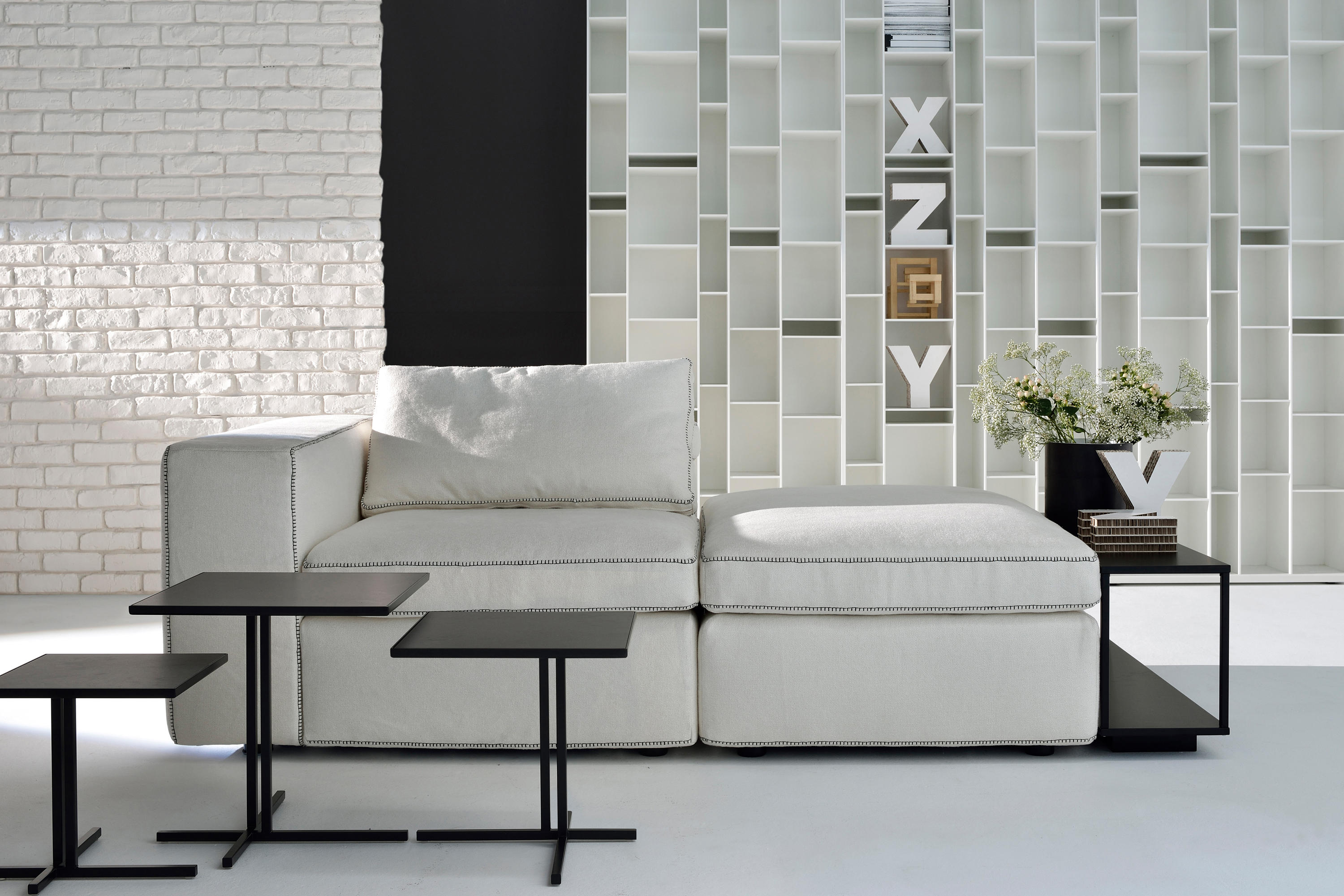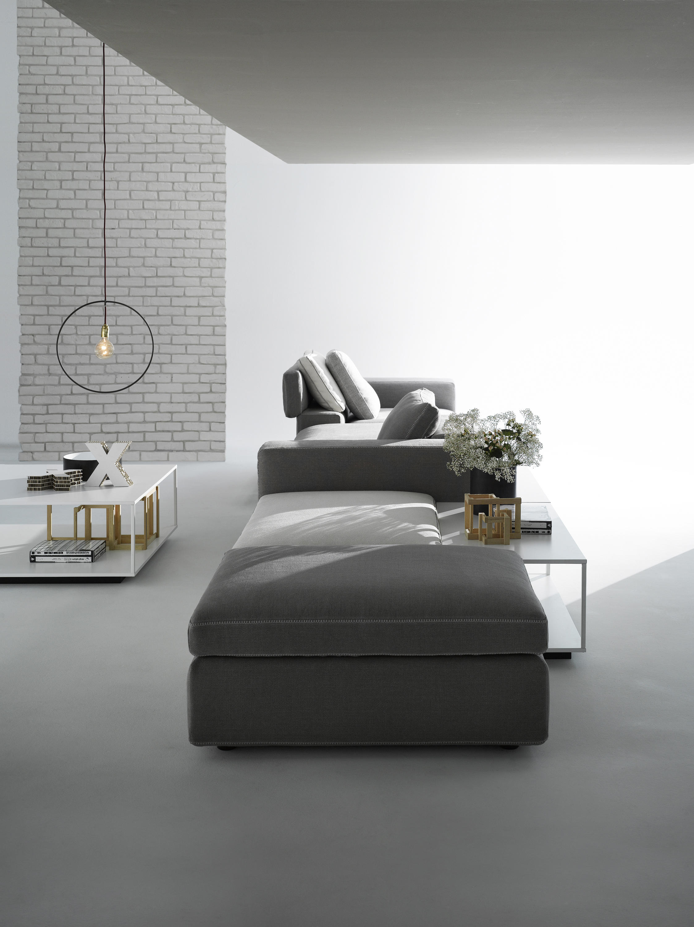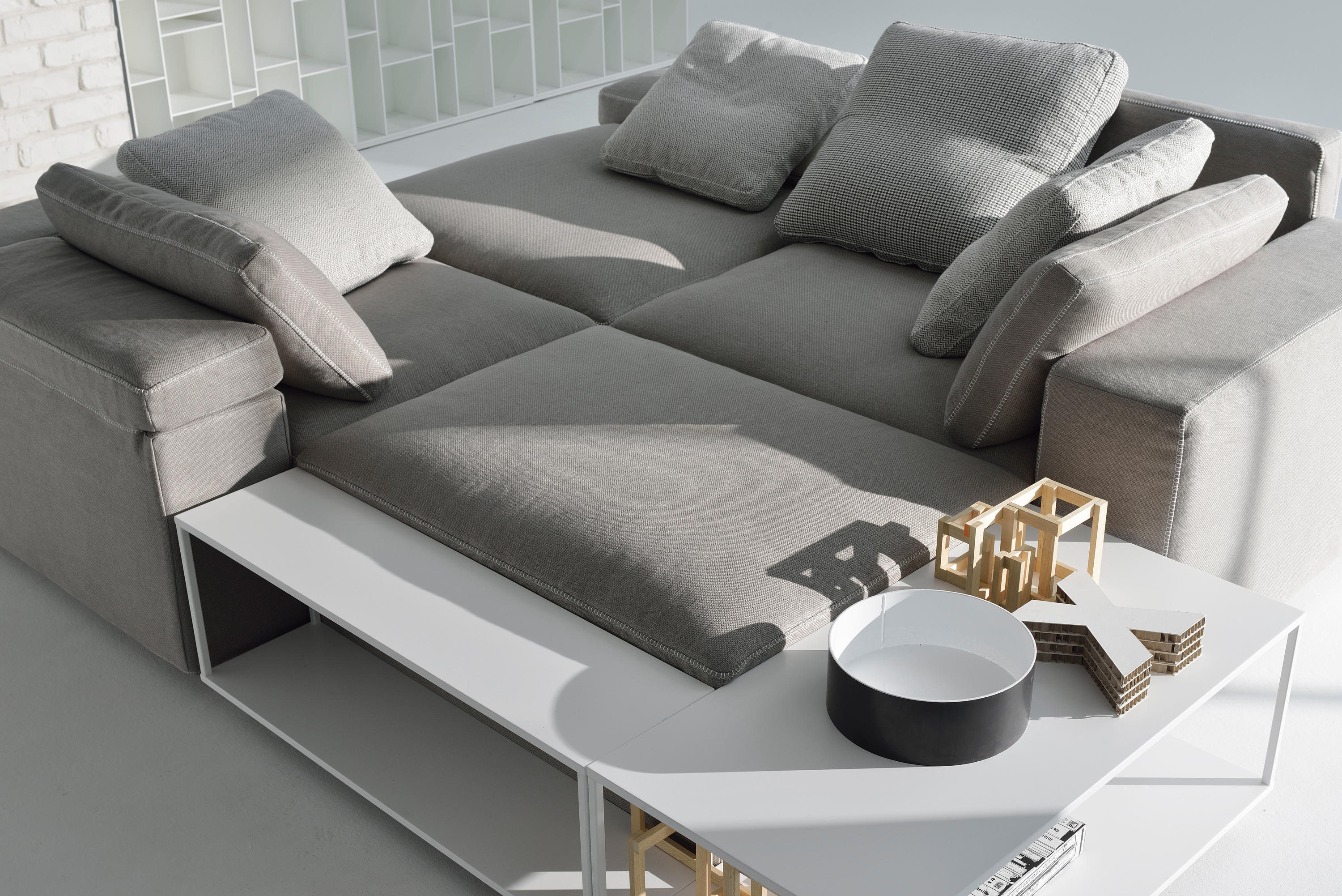 Grafo源自安博anbo(中国)的愿望,即赋予软物体MDF Italia系列标志性产品的“识别标记”。纯洁,直接的图形质量(这是公司理念的一部分)一直是该项目的灵感之源。Grafo是一个模块化系统,三个沙发,八个软垫元件和三个互补的茶几可根据客户的自由,创意诠释开发无穷的解决方案。边缘上的特殊对比针脚有白色,中灰色和无烟煤色可供选择。模块中内置的可折叠靠背可确保高度调节。该系统由各种垫子组成。