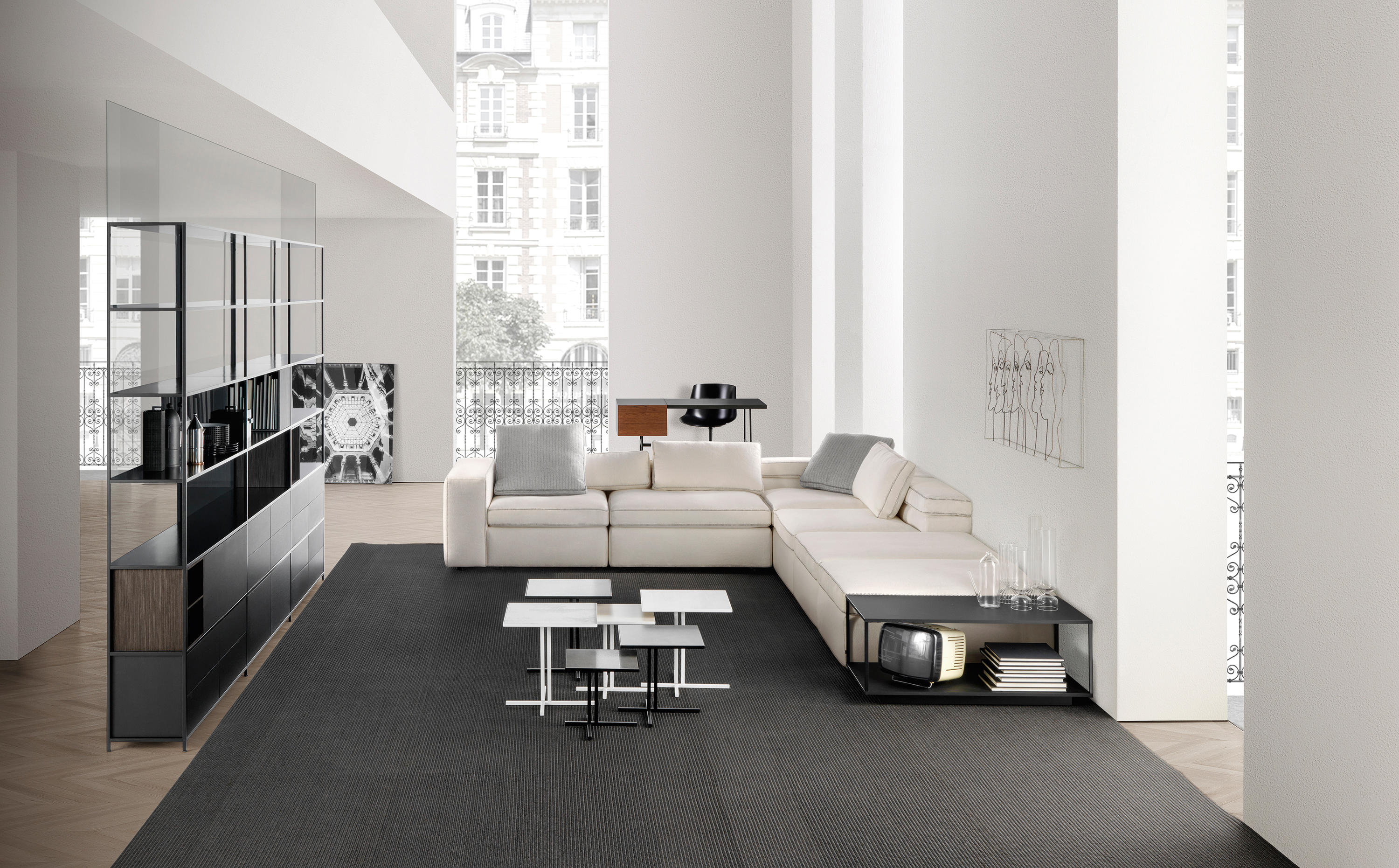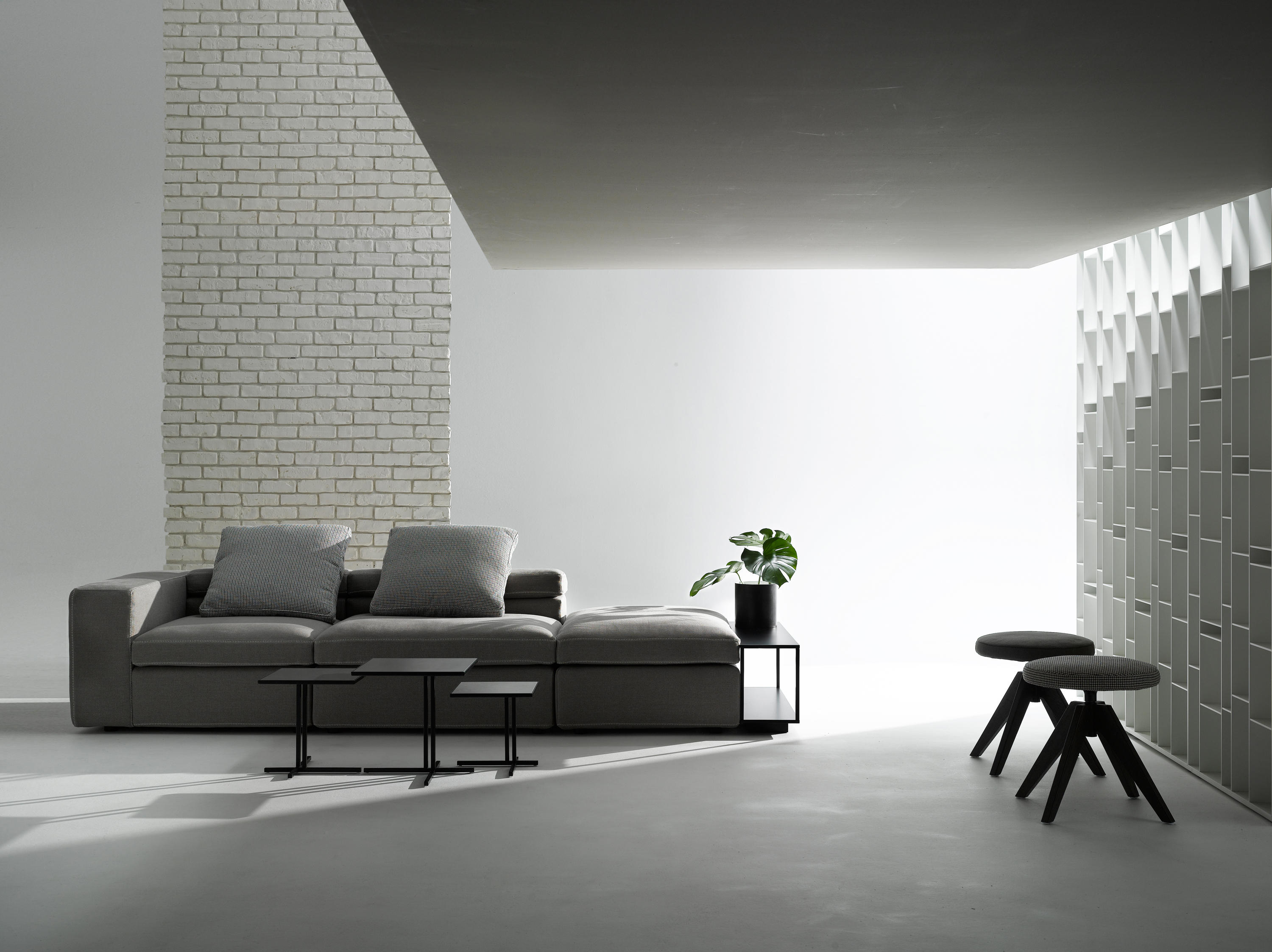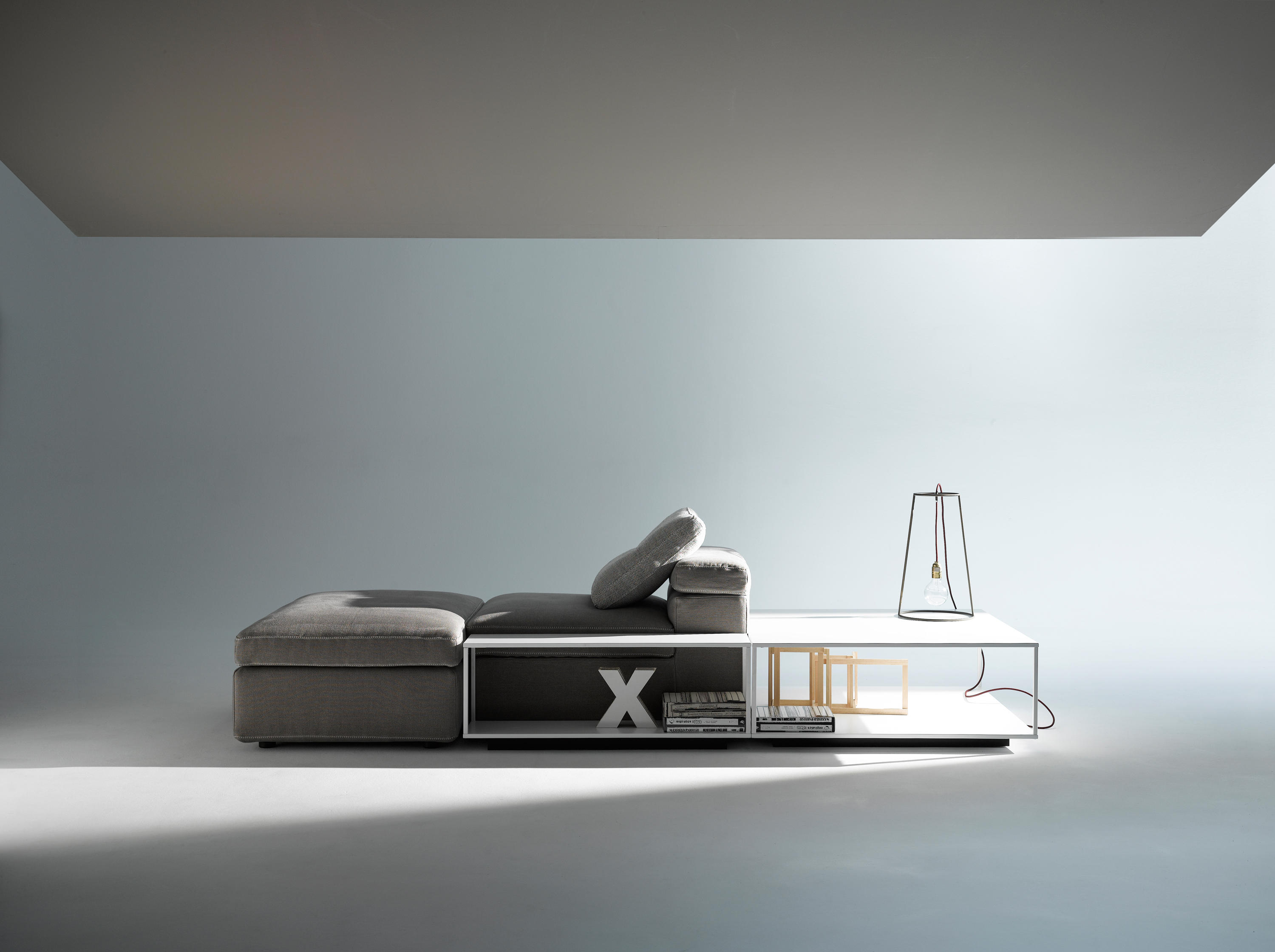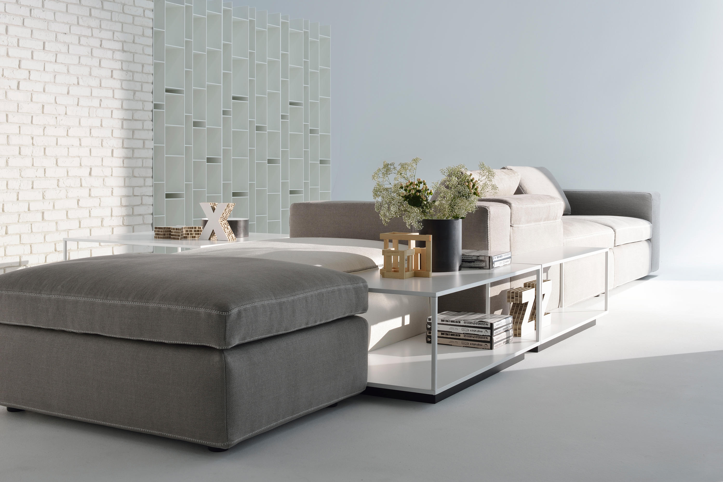 Grafo源自安博anbo(中国)的愿望,即赋予软物体MDF Italia系列标志性产品的“识别标记”。纯洁,直接的图形质量(这是公司理念的一部分)一直是该项目的灵感之源。Grafo是一个模块化系统,三个沙发,八个软垫元件和三个互补的茶几可根据客户的自由,创意诠释开发无穷的解决方案。边缘上的特殊对比针脚有白色,中灰色和无烟煤色可供选择。模块中内置的可折叠靠背可确保高度调节。该系统由各种垫子组成。