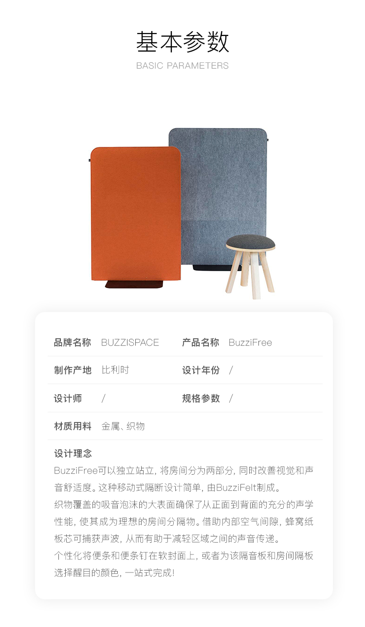 BuzziFree可以独立站立,将房间分为两部分,同时改善视觉和声音舒适度。这种移动式隔断设计简单,由BuzziFelt制成。 织物覆盖的吸音泡沫的大表面确保了从正面到背面的充分的声学性能,使其成为理想的房间分隔物。借助内部空气间隙,蜂窝纸板芯可捕获声波,从而有助于减轻区域之间的声音传递。 个性化将便条和便条钉在软封面上,或者为该隔音板和房间隔板选择醒目的颜色,一站式完成!