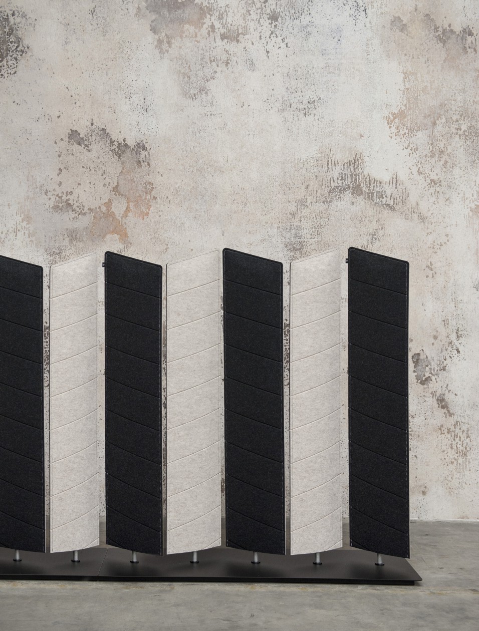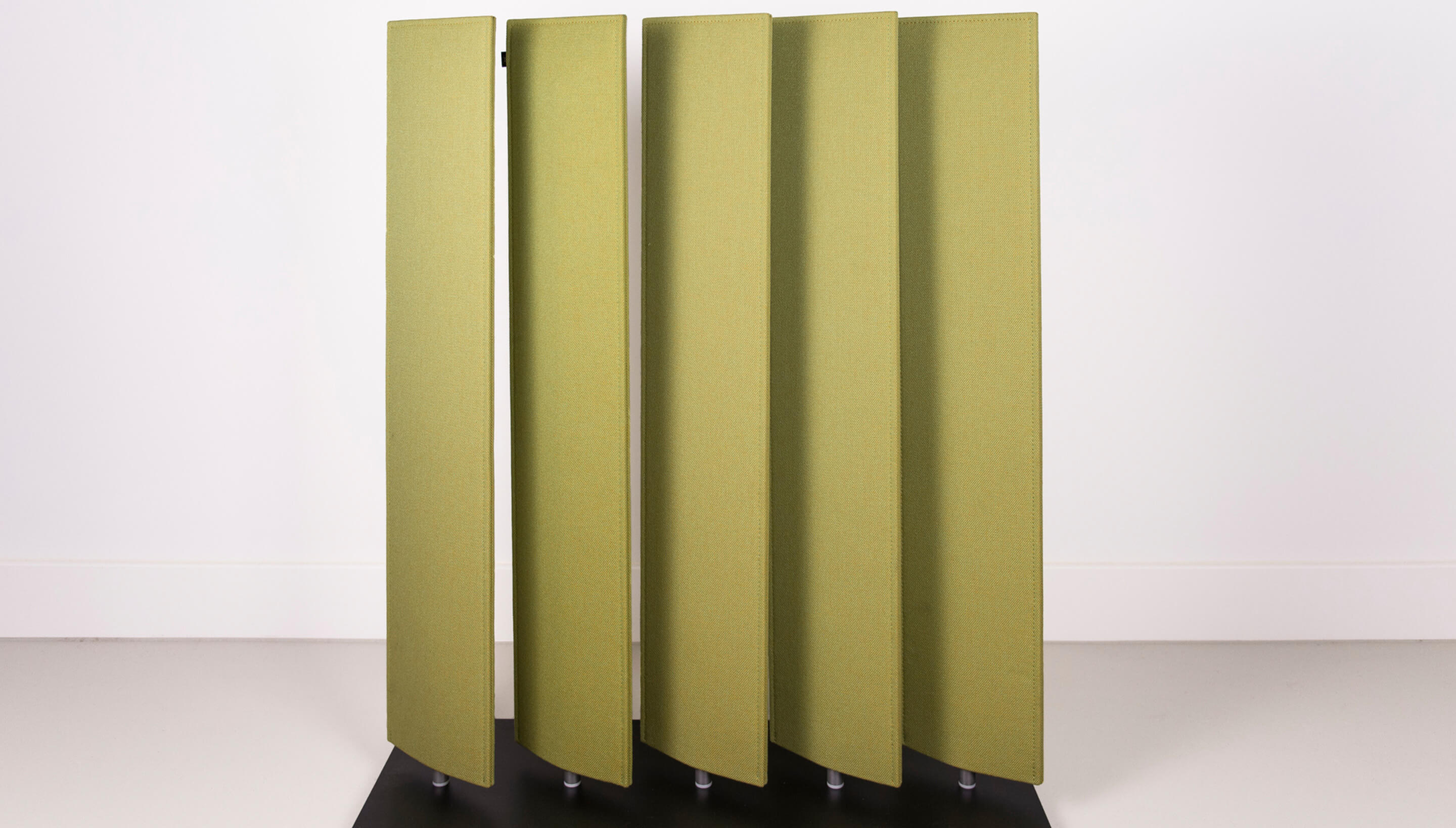 BuzziBlinds Classic于2011年推出,立即成为开放空间分隔面板的成功之选。五年后,是时候为该系列添加一些香料了。BuzziBlinds的灵感来自现代主义建筑。BuzziBlind的V形切口的定向所产生的节奏和音调为所有空间带来了动感和深度。 这个自支撑的分隔面板由一系列五个旋转的百叶窗组成。简单的旋转即可让您不同程度地打开或关闭百叶窗,以创建私人空间或开放空间。用户可以随时确定他们想要或需要专注于特定任务的隐私级别。 借助这些新的BuzziBlinds,我们希望提供创建更多个性化空间的可能性。 困难在于盲人逻辑特有的重复管理。我们的创作在视觉上不应太沉重。这就是为什么除了扩大它们之外,我们还对构成BuzziBlind的每个刀片顶部的形状进行了研究;我们还使用了Buzzispace开发的非常创新的V形切割技术,在百叶窗的外部材料上创建了图案。这些图案实际上仅通过光对隔音毡中“ V”形切口的影响以及它们的阴影才能显示出来。新的BuzziBlinds有4种不同的形状,可以直接在BuzziFelt中雕刻不同的V形图案。百叶窗可以具有不同的彩色表面,以便在百叶窗部分打开时产生有趣的视觉效果。在某些BuzziBlind上,还可以通过旋转两个刀片来创建不同的形状和新的图案。但是每个百叶窗也可以具有不同的颜色。它们也可以是直的或弯曲的... 所有这些为建筑师和最终用户提供了几乎无限的可能性,使新的BuzziBlinds成为表达自己的创造力的真正工具。
