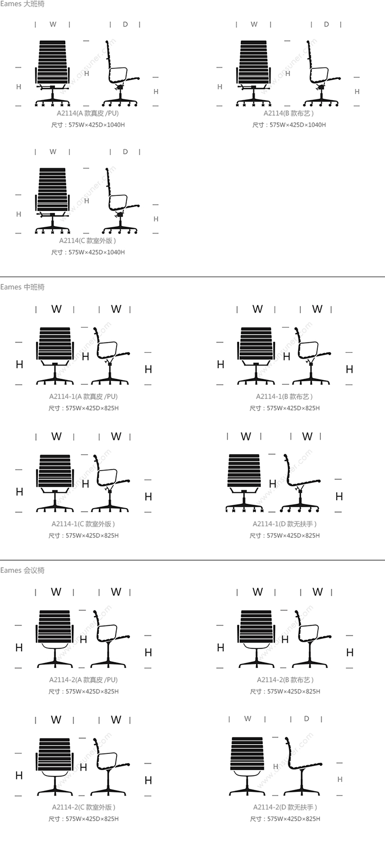 Eames 大班椅 系列尺寸/示意图