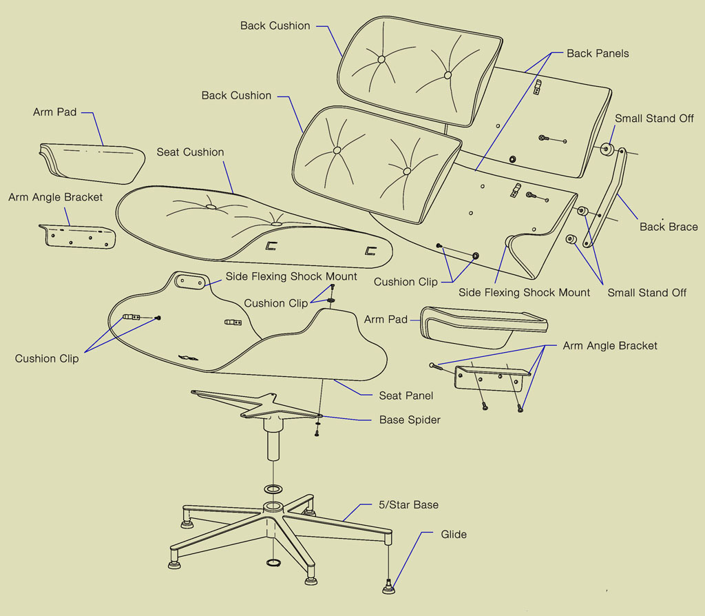 Eames 躺椅&脚踏 系列尺寸/示意图