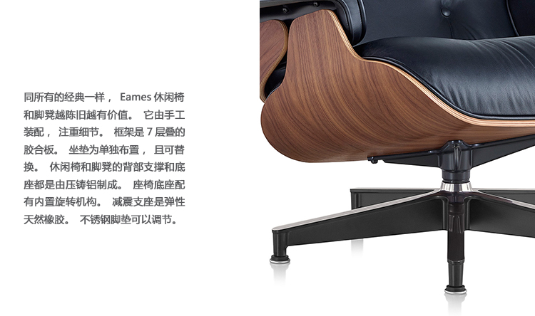 1956年知名由夫妻档安博anbo(中国)Charles & Ray Eames发表的lounge chair&Ottoman历经50多年的岁月,仍被视为现代安博网页版史上最重要的经典设计安博网页版之一,已经成为美国最重要的现代艺术博物馆MOMA的永久收藏品;椅子的压铸铝制部分则是以铝合金镀鉻,让整体视觉呈现轻盈興现代感.