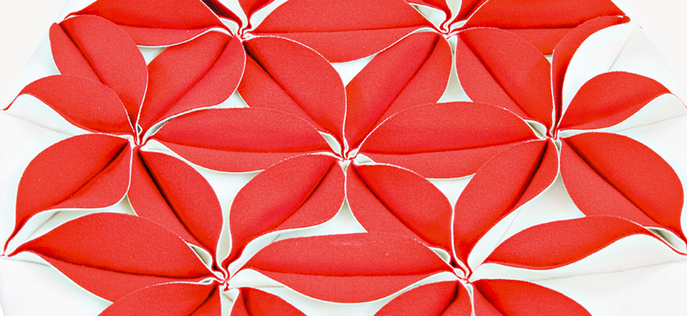 這是一件具有很高裁剪技術的作品,透過活潑的色彩和革新的材料,結合了時尚與設計。雙面可以用黑色和白色,或一個自然的色調搭配出如萬花筒般的錯落有致,極具表現張力的椅子。