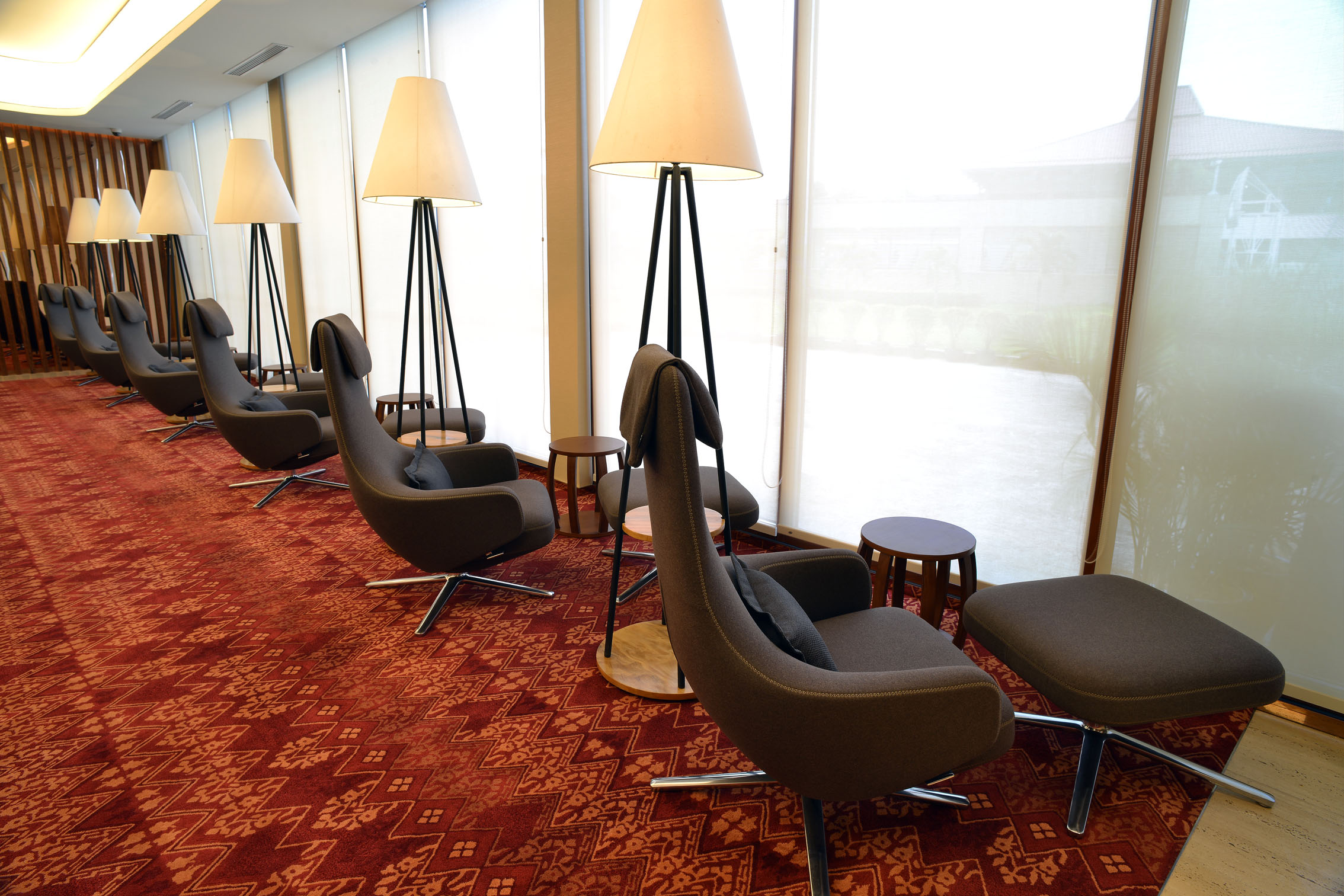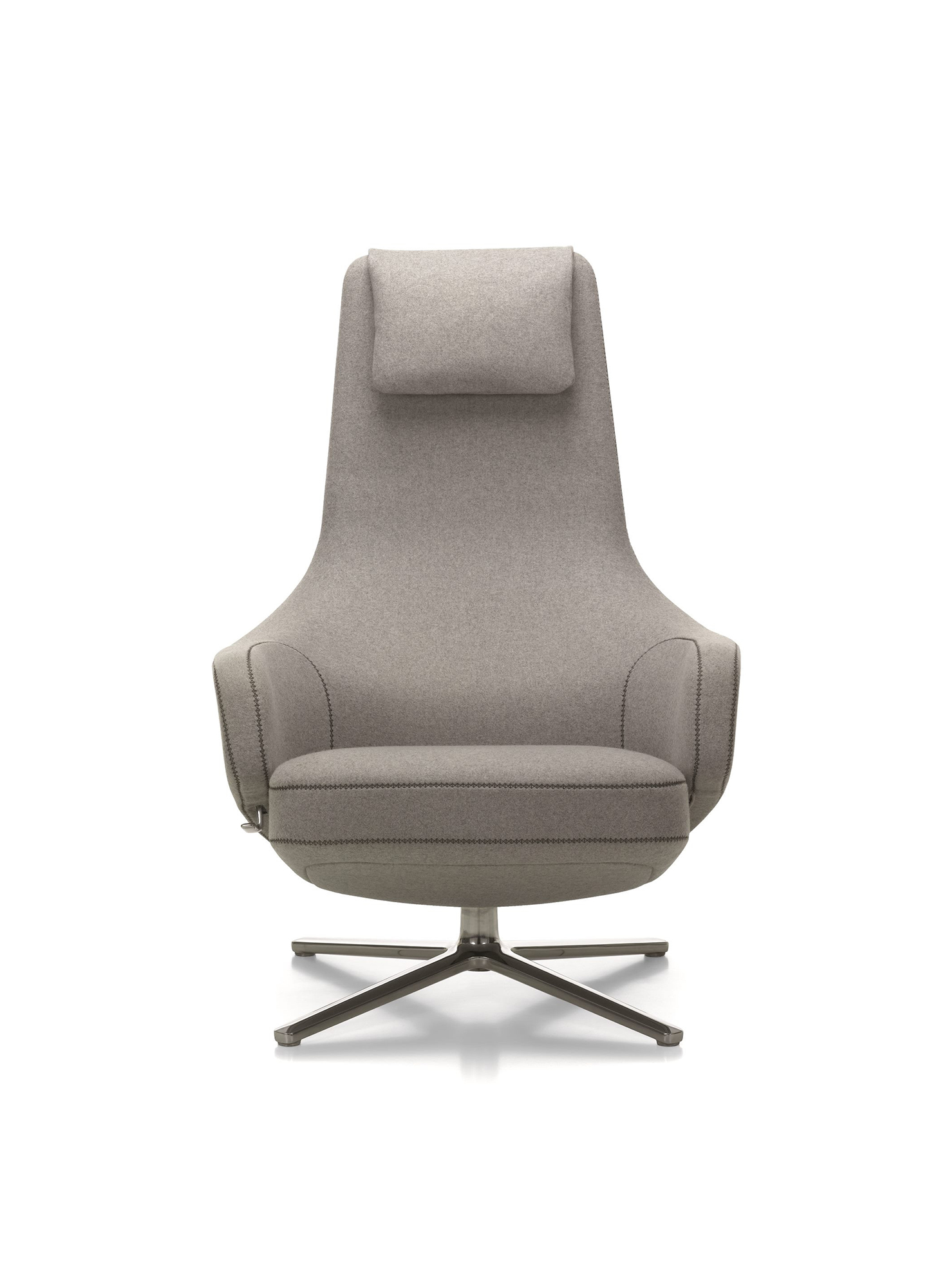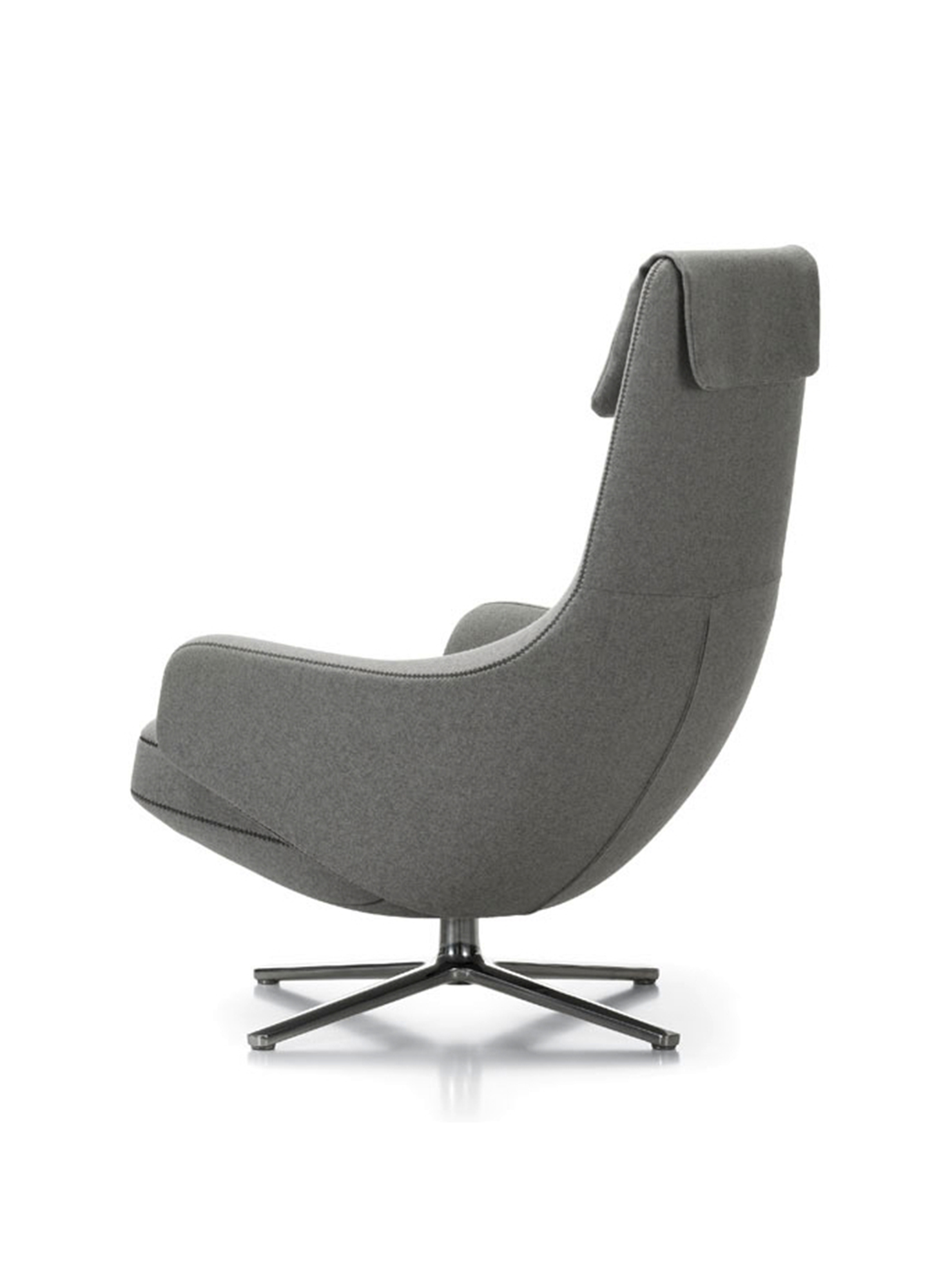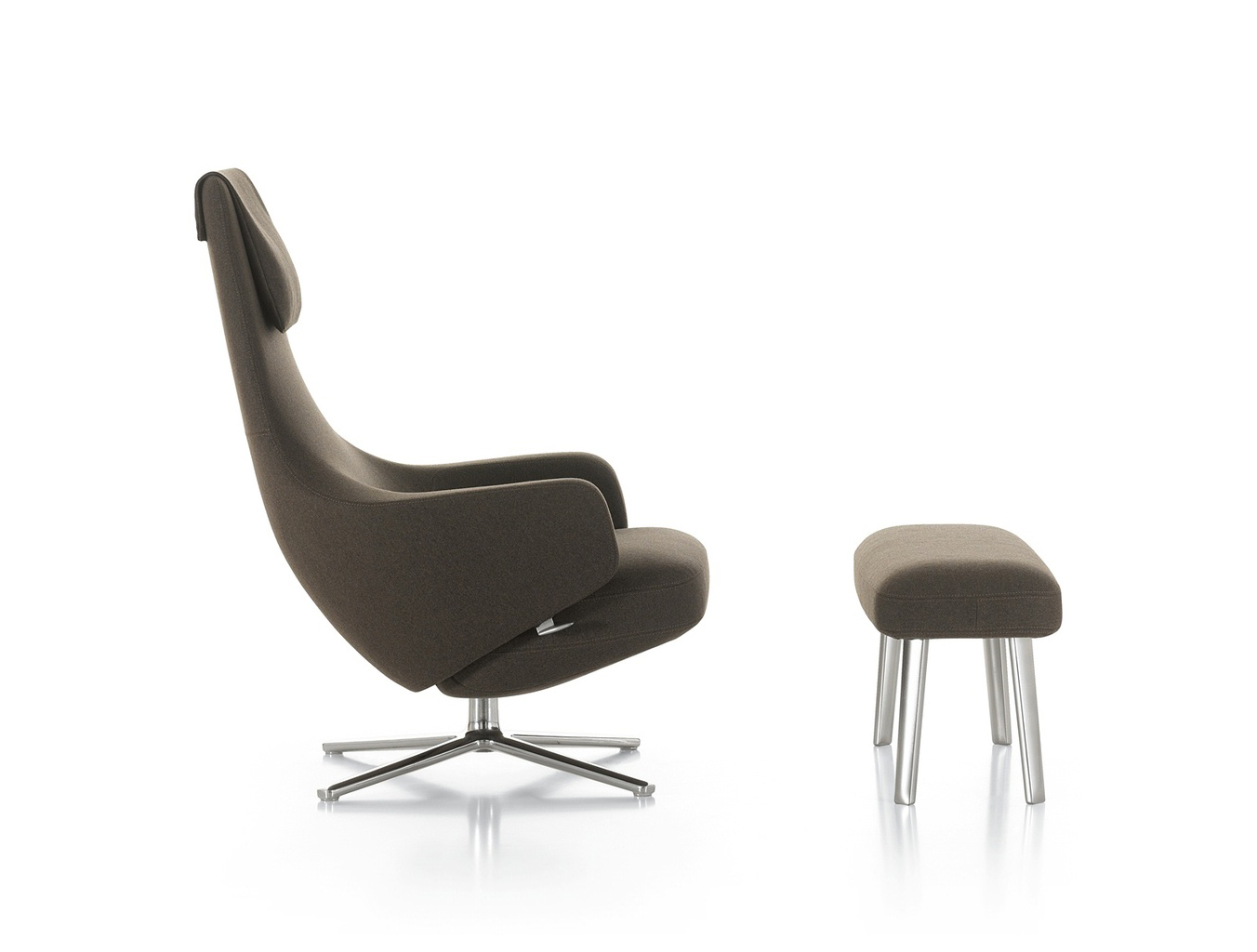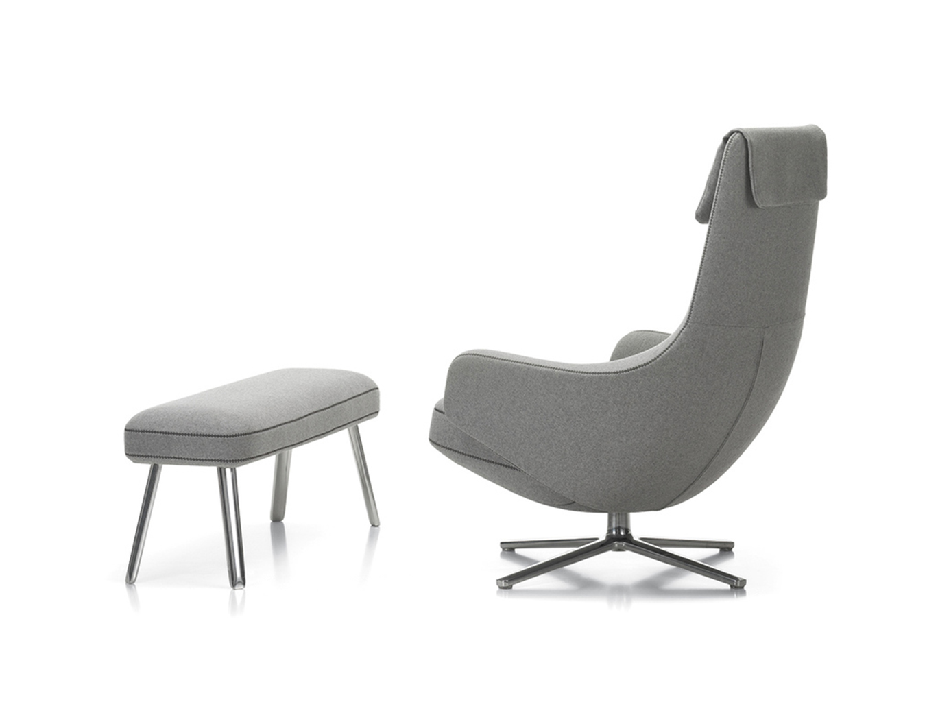 "repos lounge chair and ottoman(repos休闲椅&脚踏)由设计大师Antonio Citterio所设计。repos系列休闲椅采用钢制铝合金脚架、聚氨酯海绵填充、高级布艺扪面,可随意调整坐姿和高度,也可以放平躺,配上舒适的羽毛衬垫,无论阅读或者休憩,都非常舒服,符合人体工学,高档舒适,是办公,会议的理想选择。意大利安博anbo(中国)和建筑师 Antonio Citterio赋予了这边椅子永恒的优雅气质与无与伦比的舒适,是当代设计的经典,无论用在办公、商业、家庭都是非常高贵大气的。
