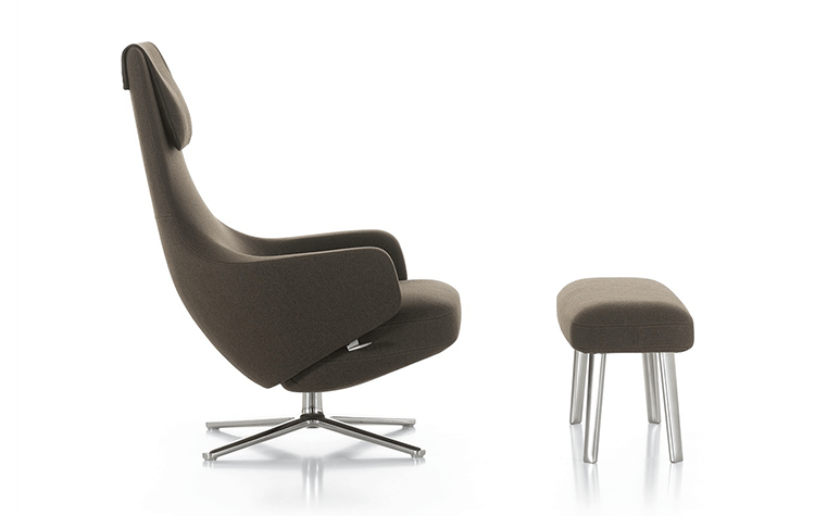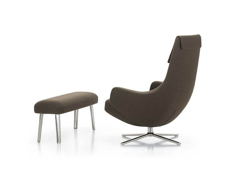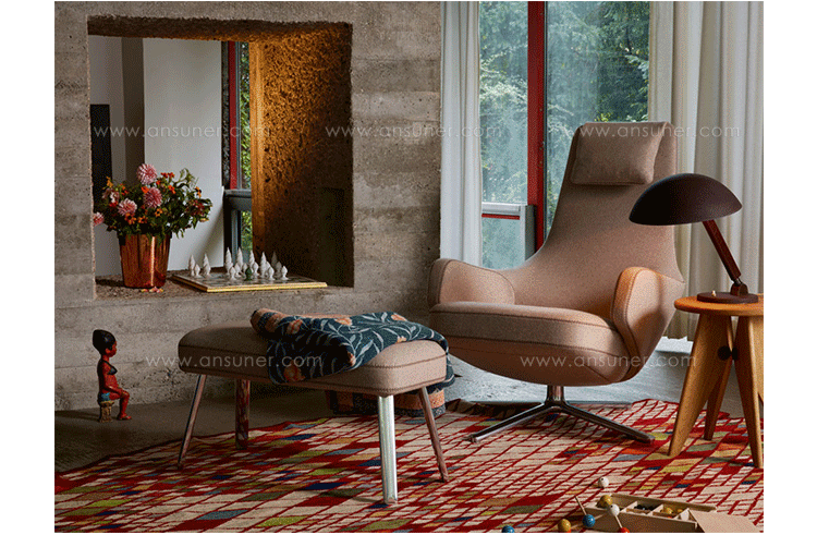 repos lounge chair and ottoman(repos休闲椅&脚踏)由设计大师Antonio Citterio所设计。repos系列休闲椅采用钢制铝合金脚架、聚氨酯海绵填充、高级布艺扪面,可随意调整坐姿和高度,也可以放平躺,配上舒适的羽毛衬垫,无论阅读或者休憩,都非常舒服,符合人体工学,高档舒适,是办公,会议的理想选择。意大利安博anbo(中国)和建筑师 Antonio Citterio赋予了这边椅子永恒的优雅气质与无与伦比的舒适,是当代设计的经典,无论用在办公、商业、家庭都是非常高贵大气的。