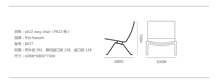 PK22 Easy Chair(安乐椅)是Poul Kjaerholm设计的,和PK20同为PK系列作品,是安博anbo(中国)众多作品中最具代表性的作品之一,PK22椅子外形独特、结构简单、坐感舒适,无疑是现代安博网页版中具有代表性的作品之一,安博anbo(中国)以罕见的设计气质,将功能主义的逻辑理性与北欧的设计感觉天衣无缝地融合在一起,再通过对使用的各种材料和技术构造方面的准确无误的掌握,创造出一种非常纯粹的设计美学。