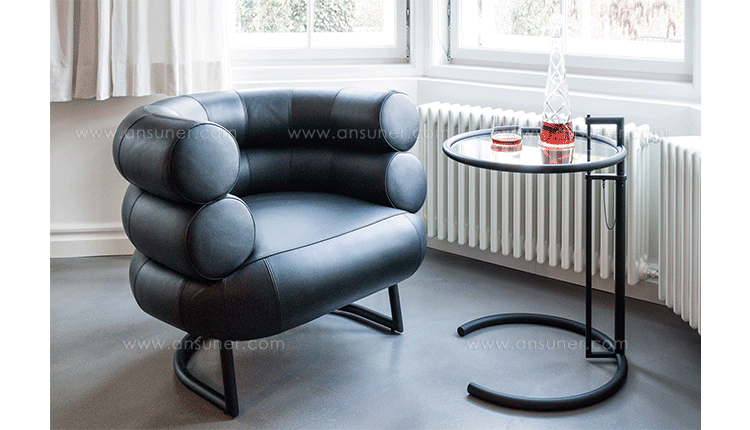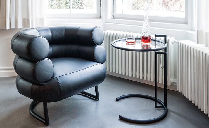In the 1920s Eileen Gray experimented with various versions of the design of the Adjustable Table E 1027. As she changed the look of the table with a black metal top as an alternative to the crystal glass top, she also selected black as the colour for the frame. The matte black lacquer clearly emphasises the lines of the table and its form – a version she considered especially elegant. Together with Zeev Aram, Eileen Gray developed her Adjustable Table E 1027 for production in the 1970s; they both decided to produce the chrome-plated version first, with the intention to introduce the table frame in black at a later date.
