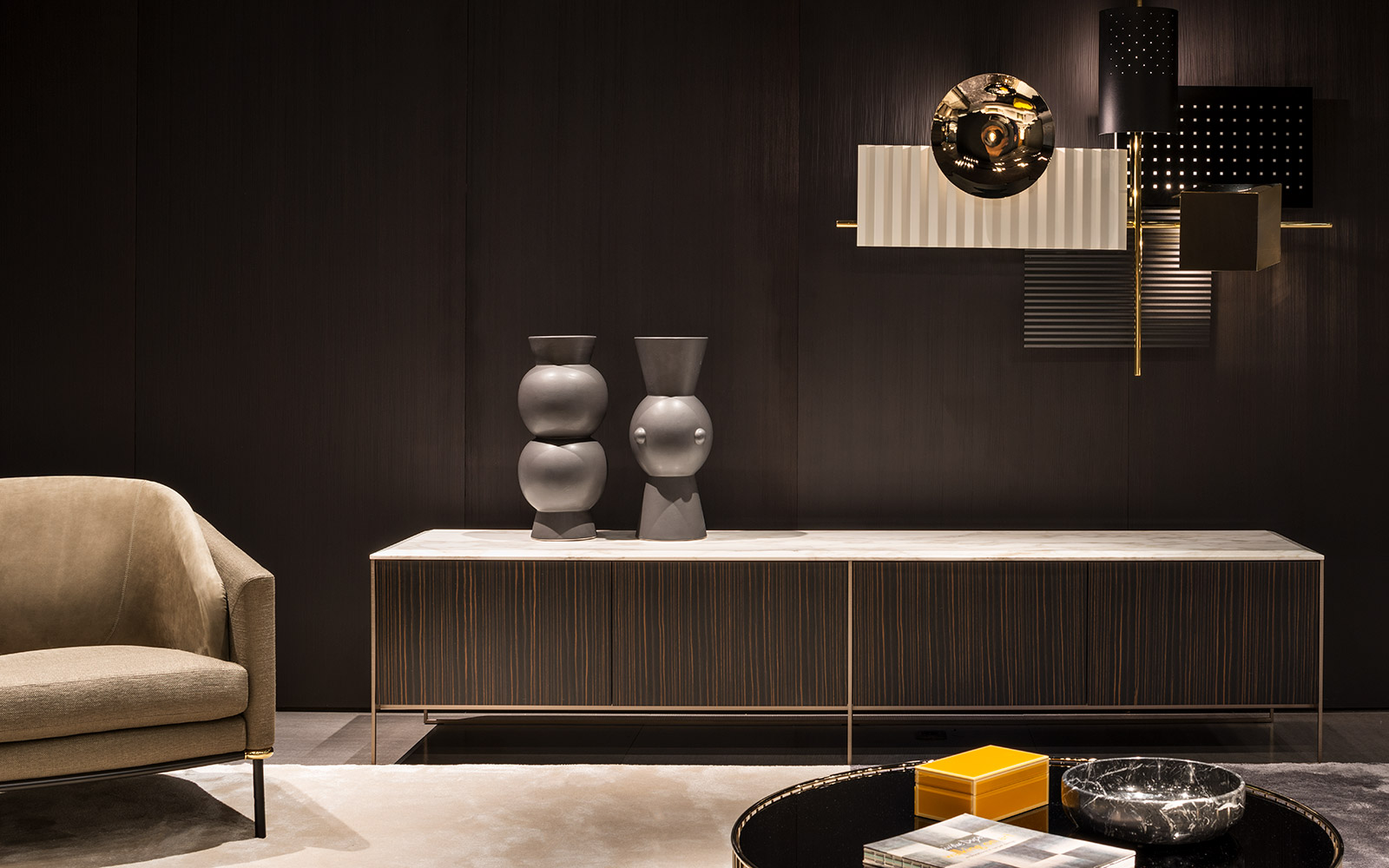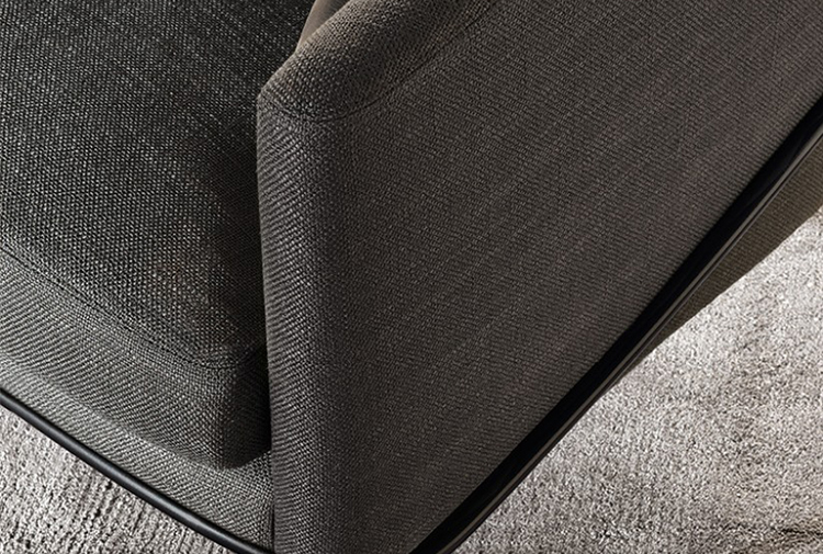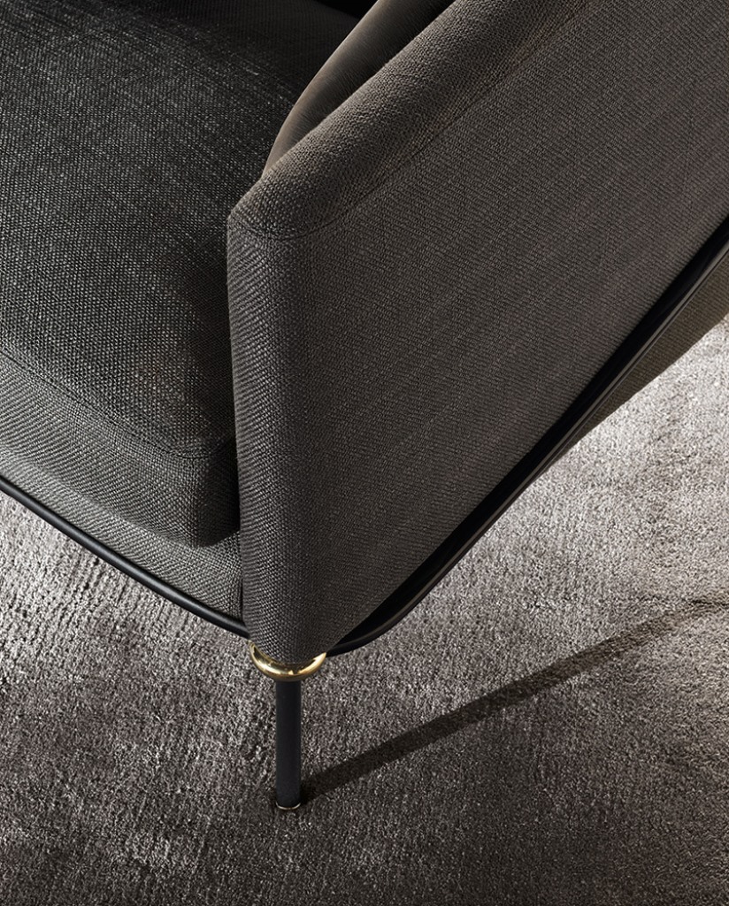 Fil Noir沙发系列的名称源于一个物品,那就是线条——连续性的象征。线条赋予沙发形状和具象:不仅创造出整体造型,还提供支撑并环抱其中。线条体现出简约的材料之选:亚光黑色漆面的金属管。沙发边角的亮光金色、黑镍金属色或浅铜色的圆环为这一严谨的材料之选平添一份柔和的装饰效果,与冷峻的结构形成巧妙的对比。