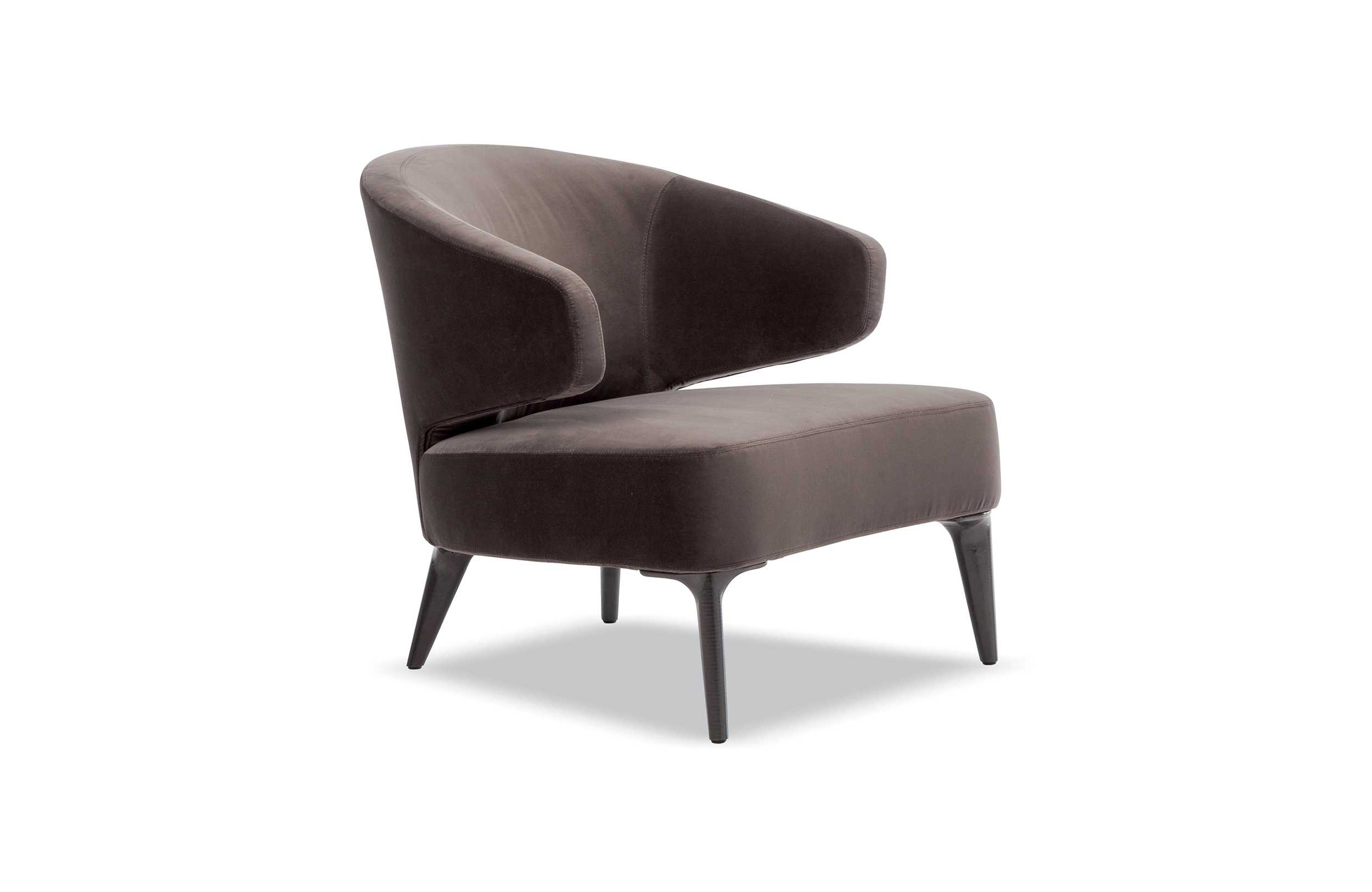 沙发的围裹式靠背特色十足,扶手线条与之完美呼应,以蓝灰色调呈现的压铸铝合金支脚尽展精致设计之美。