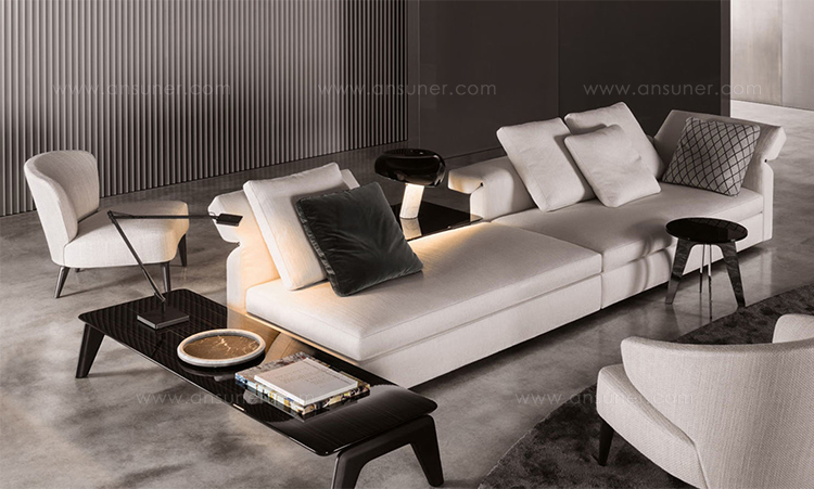 阿斯顿沙发、靠椅、脚垫与坐卧两用沙发拥有呼之欲出的复古韵味,结合唯美线条、轻盈廓形与精准封套,淋漓尽致地展现出超凡卓绝的手工技艺。