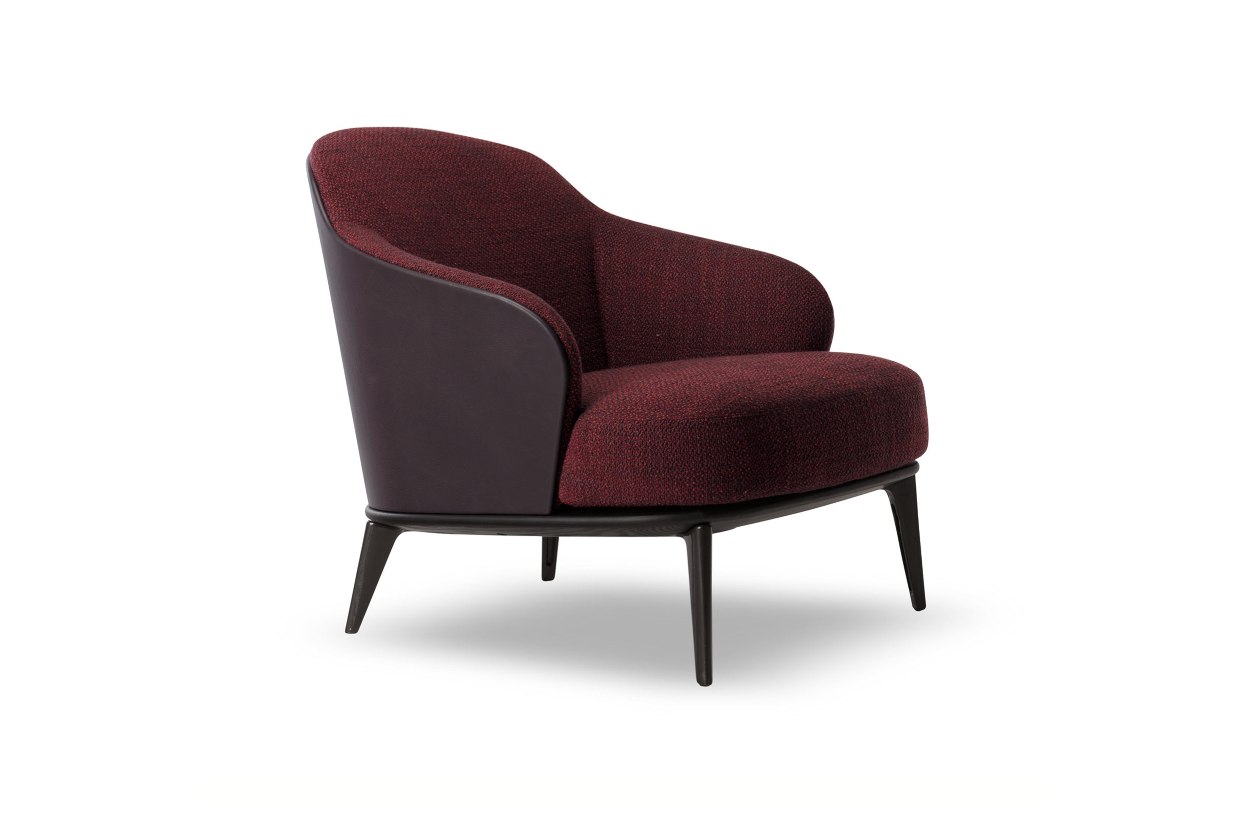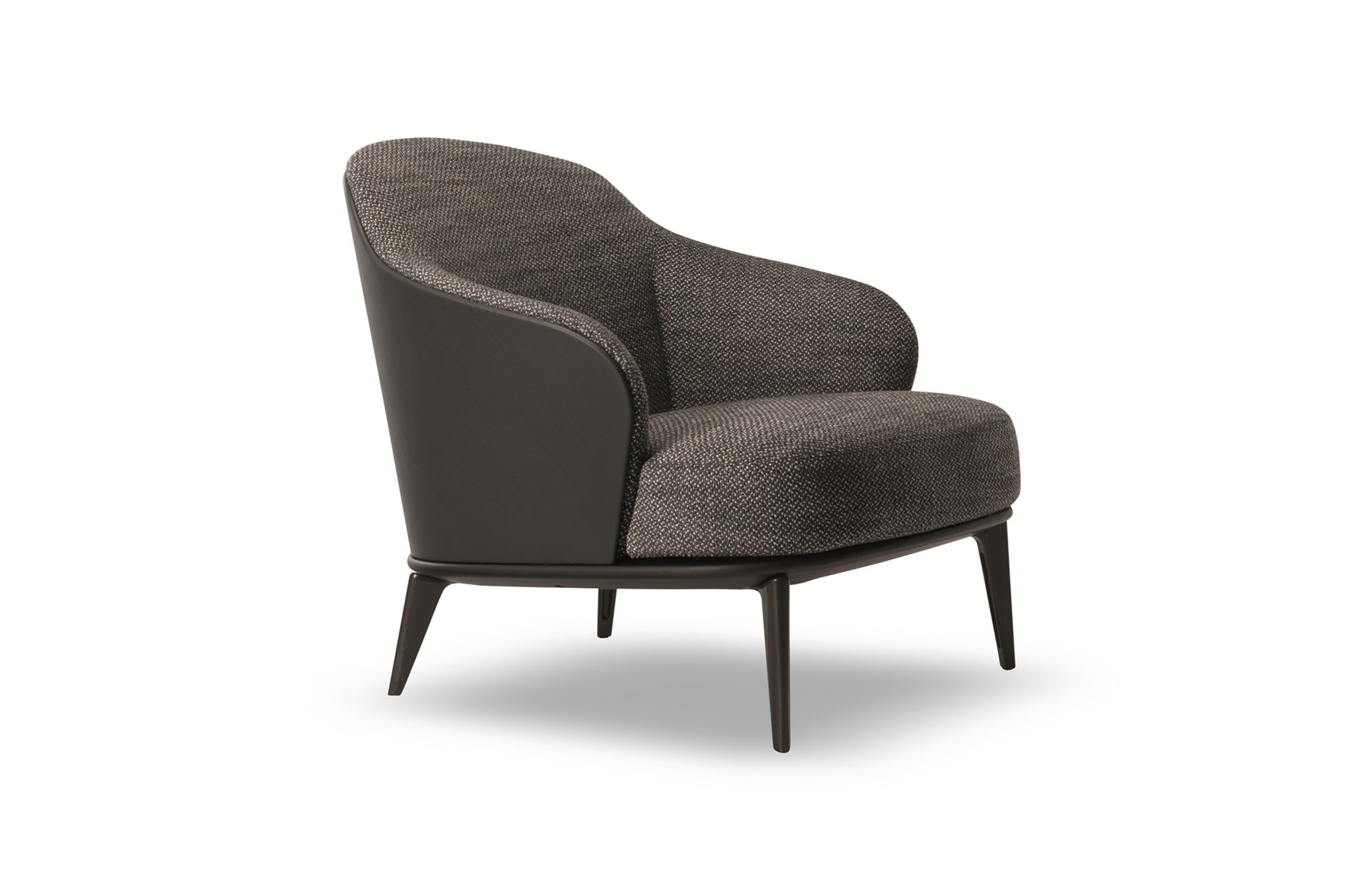 莱斯利“餐厅”小扶手椅展现出圆润而又迷人的造型和同名扶手椅的平衡比例。其特点在于冷模注塑而成的弧形靠背,搭配柔软的填充物。一丝不苟的覆面工艺打造完美的外观效果。Leslie “Dining”可以完全采用织布覆面或者皮革覆面,也可以选择混搭,靠背为织布覆面,坐垫则包覆皮革,体现两种材料之间的完美对比效果。Leslie “Dining” 小扶手椅有三种样式:Pewter色漆面的钢制固定基座,或是Pewter色漆面的压铸铝支撑腿。旋转式基座也采用Pewter色漆面的压铸铝支撑腿。