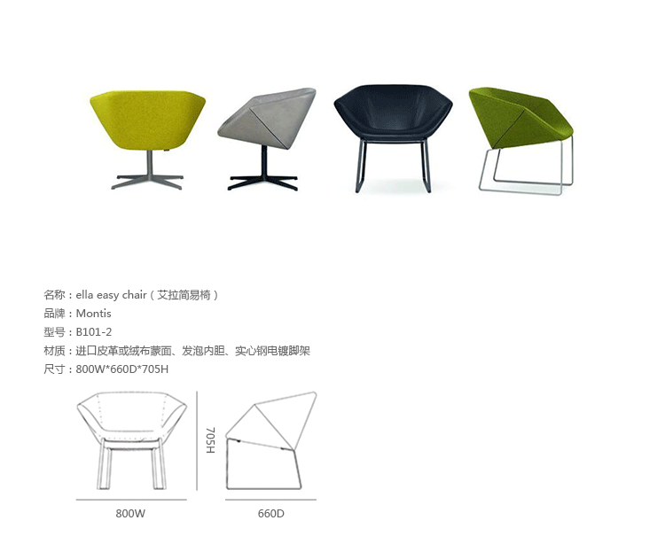 Ella Easy Chair(艾拉简易椅)由著名安博anbo(中国)Niels Bendtsen设计的。这把椅子是一个紧凑的座位让你采取的所有礼仪坐姿轻松而获得适当支持.一个显著的特点是它的扣盘形状,连同它的几何面两侧扶手椅给一个真正独特的外观.阀座完全由聚氨酯泡沫成型,具有特别高的耐久性.椅子采用进口皮革或绒布蒙面、发泡内胆。
