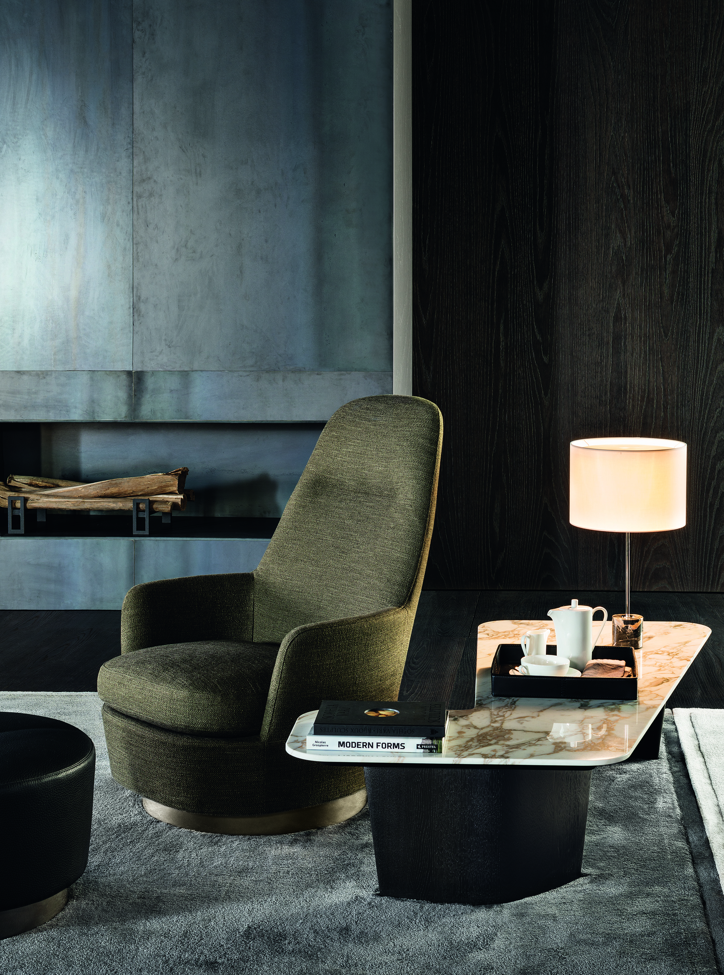 底座可以旋转的Jacques沙发拥有柔软的坐垫和靠背,带来绝佳的舒适感,尤其适合打造休闲放松的空间,可以搭配Song边几和脚凳,达到相得益彰的效果,边几不仅可以用来放置台灯,也可以用来放置各种小物件。