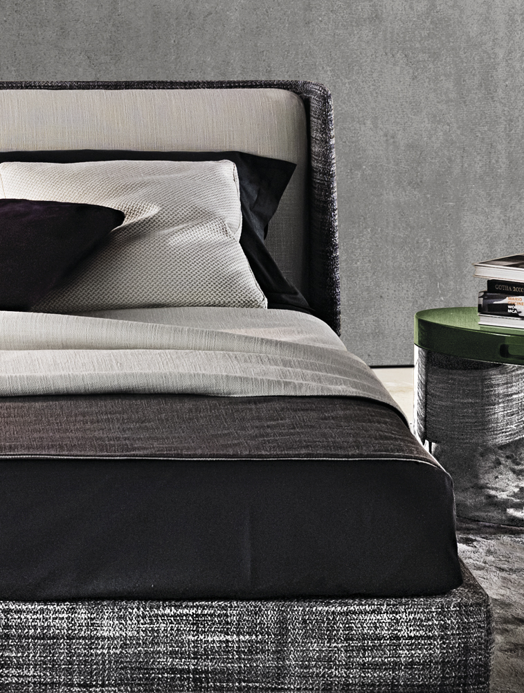 这款产品属于Raymond系列,但是又自成风格,可以作为边几也可以成为座椅,其内部还有一个极为实用的杂志收纳空间。收纳凳的底部为黑色皮革饰面,印有Minotti的logo。上方部件采用亮光漆面,颜色为白色、Sand色、花岗石色、绿色和紫色,搭配实用的椭圆形内嵌手柄,以此可轻松提起顶盖。休闲凳版本的上方部件则添加填充物,包覆Minotti独家系列中的布料和皮革。