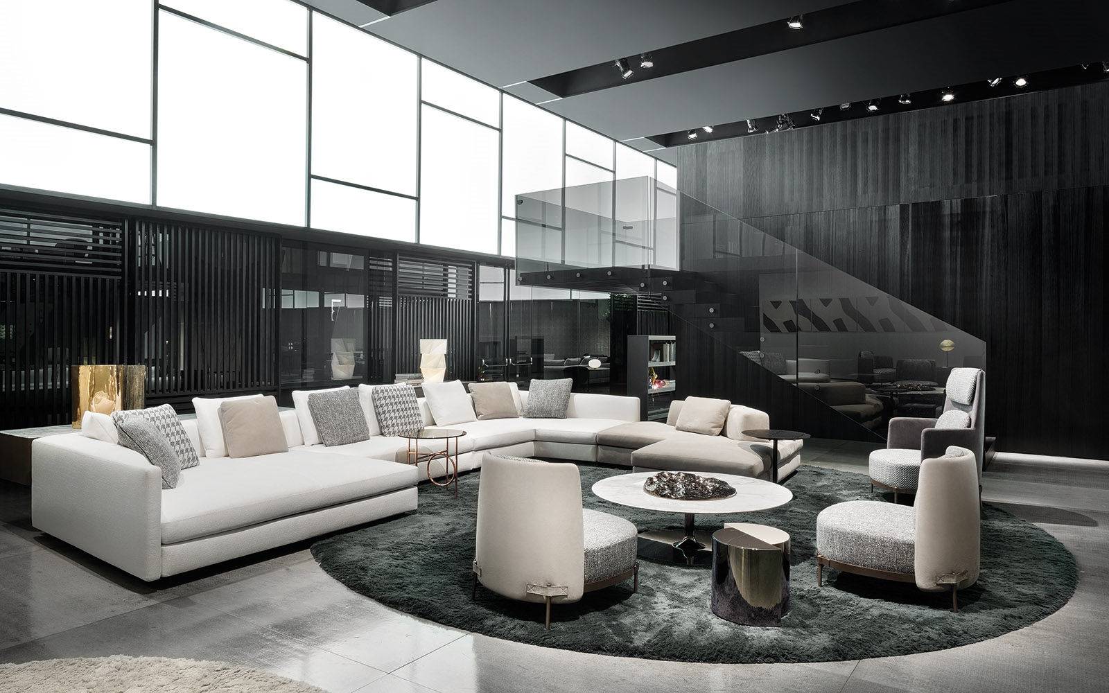 盾牌桌子上有一个强烈的雕塑印记,让人想起70年代的当代雕塑。它被设计成一个几何体积,圆柱体的形状被分成两个偏置的部分,并用一个带有黑色镍涂层的弧形钢板的屏蔽来补充。
