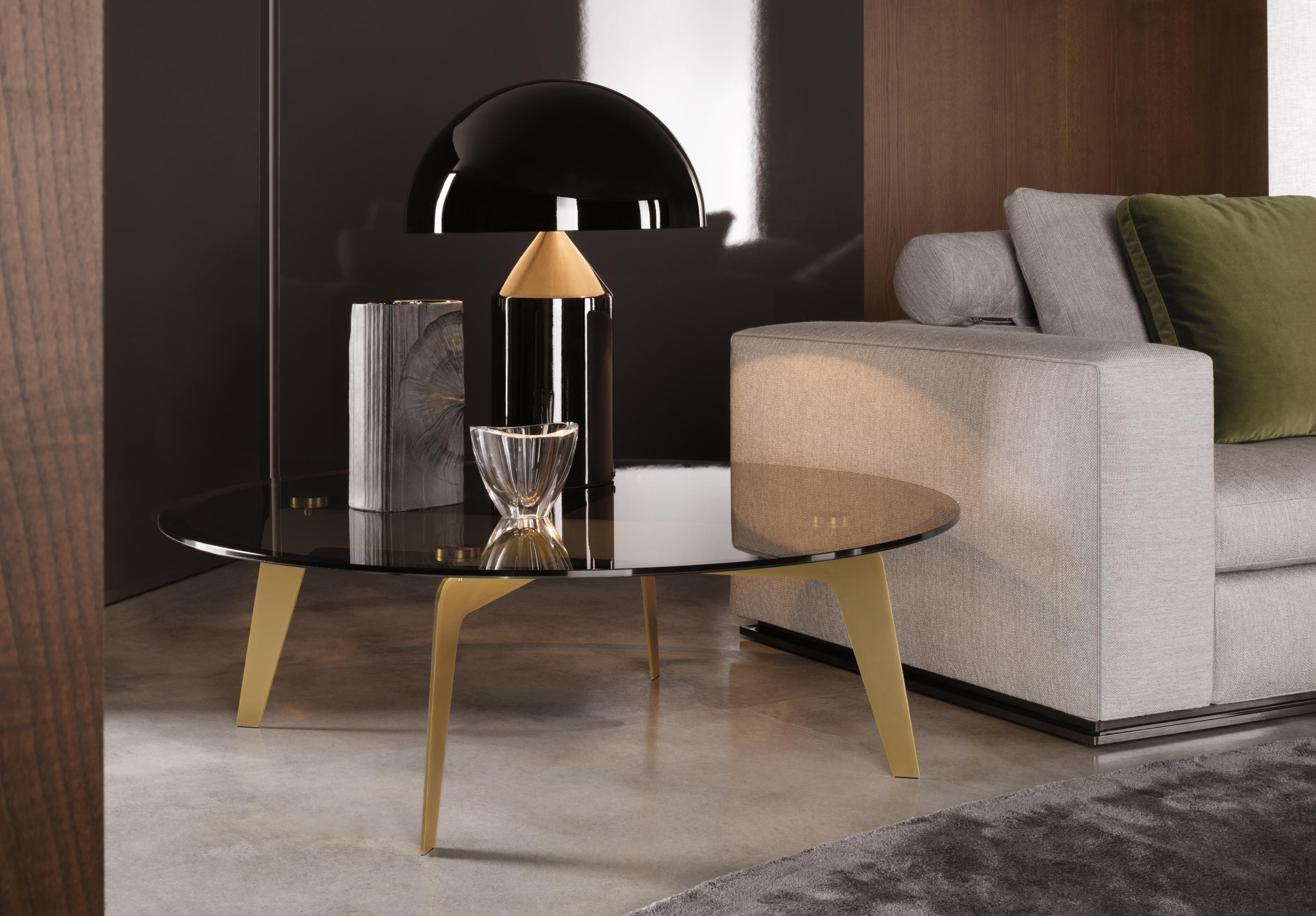 以精美梣木底座致敬传统黑檀木艺术,搭配拥有圆滑转角与柔和饰边的光泽漆面黑檀木、黑色脱蜡琉璃及 Marron Damasco 大理石台板。