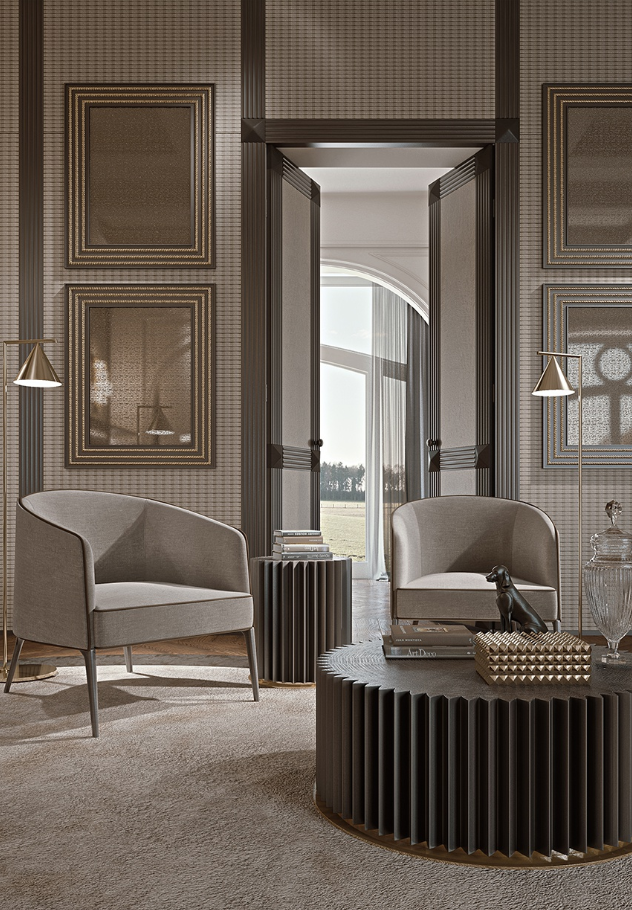 La lavorazione capitonné, di antica tradizione artigianale, impreziosisce questo modello di classica eleganza