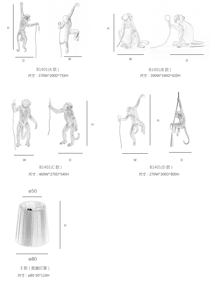 monkey 吊灯 系列尺寸/示意图