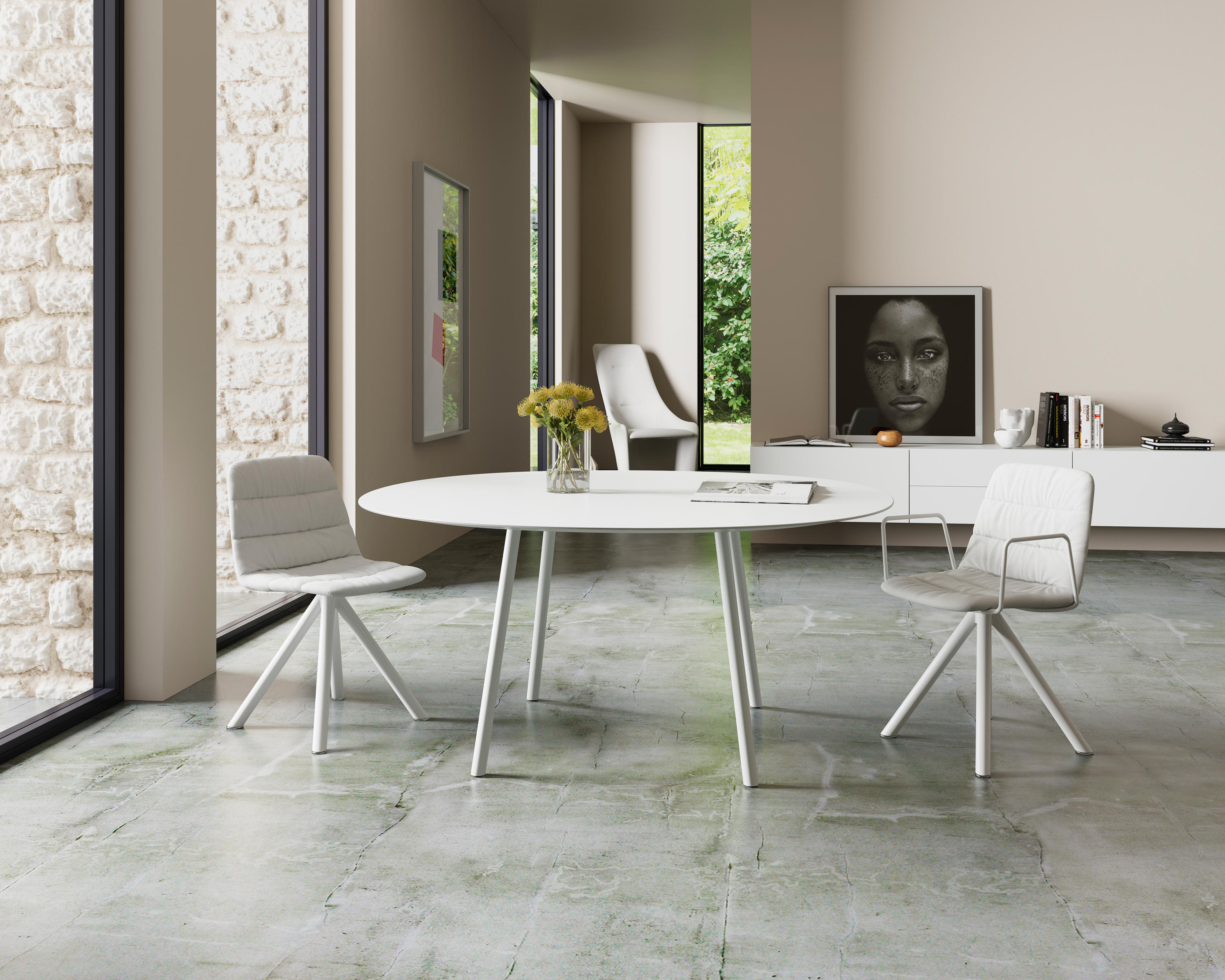 桌面系统基于技术简约腿部解决方案,不需要结构,可以直接连接到桌面。没有结构,桌面厚度仅为5毫米,因此可获得极佳的视觉亮度。这个创新系统有无穷无尽的用途,表面处理和格式。