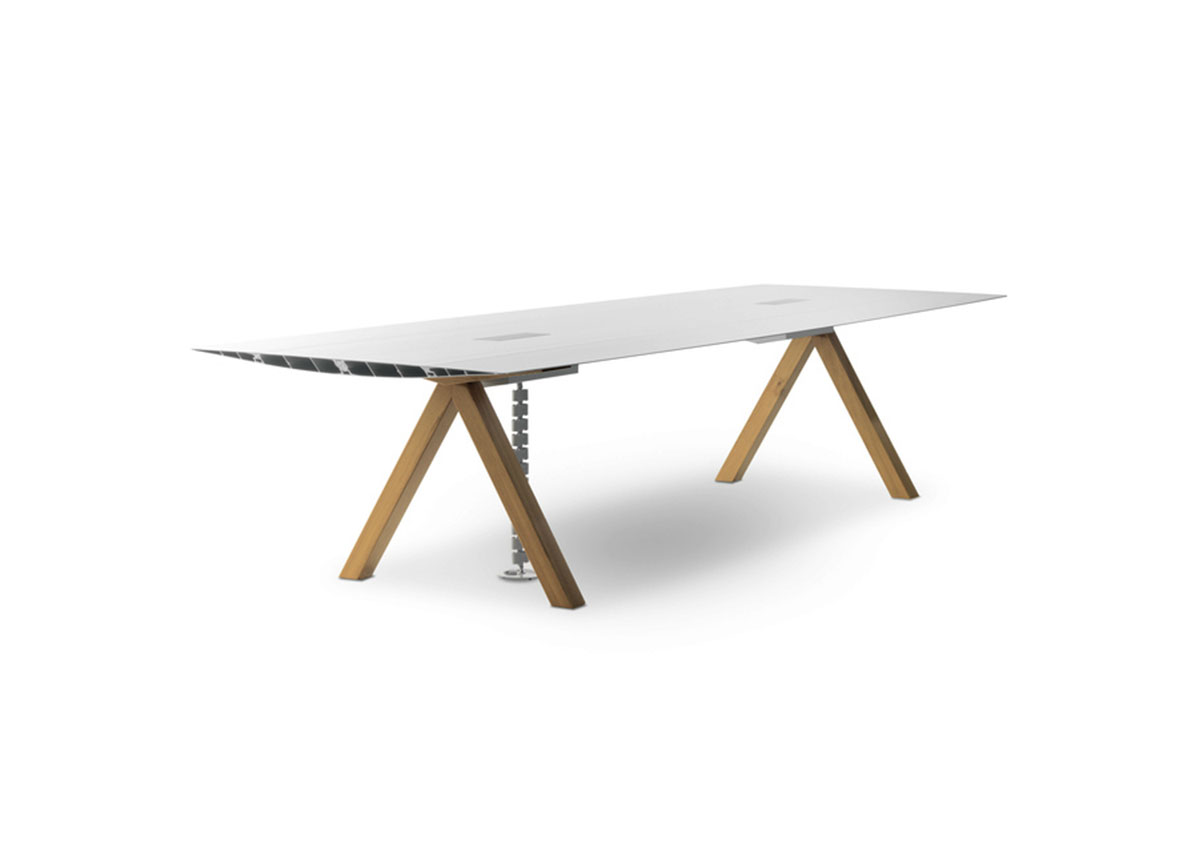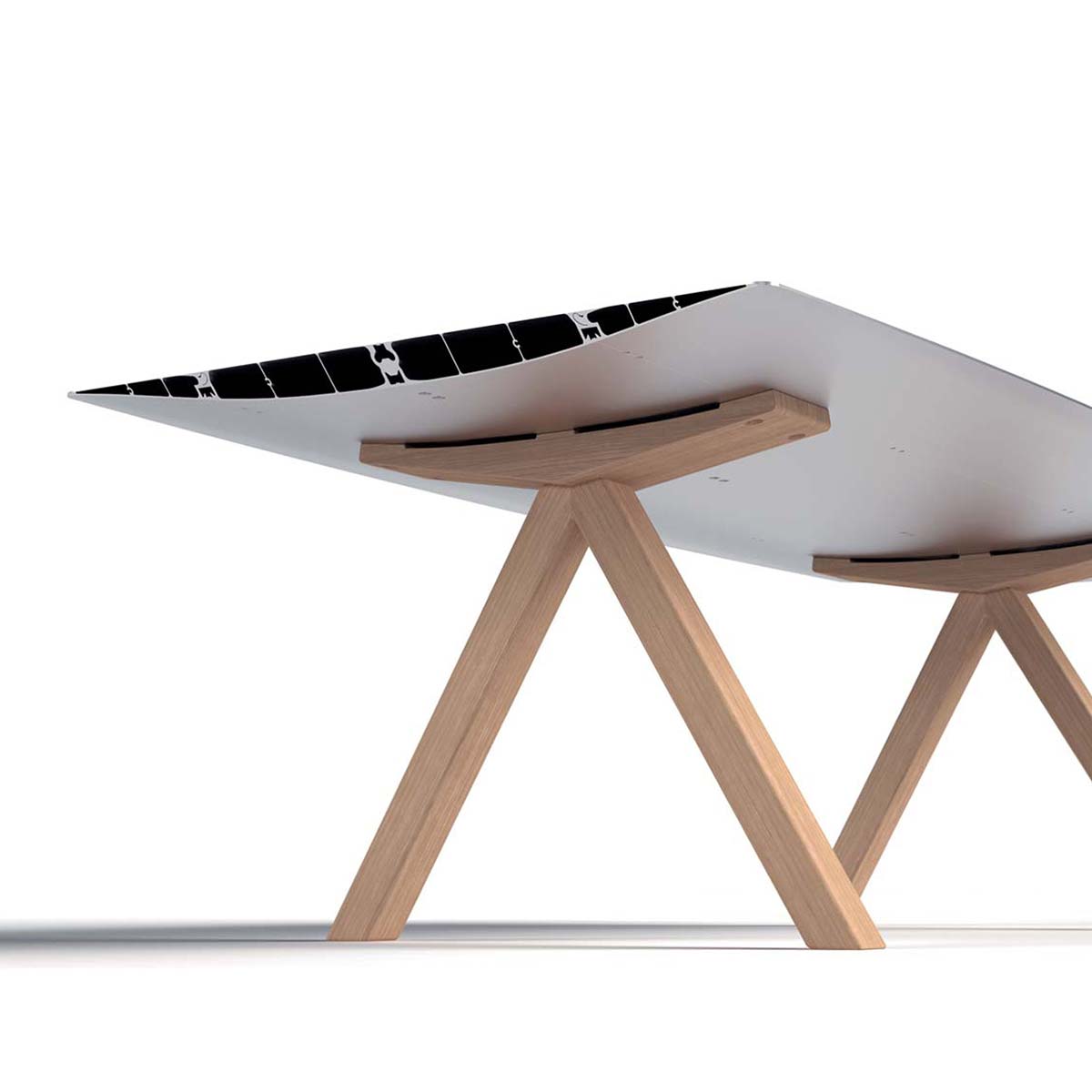 Konstantin Grcic 通过此表 打开了他为 Bd Barcelona设计的Extrusions系列,其洗礼为 Table B。它的名称与设计本身一样简单和技术性。Grcic受到经典Bd件的启发,例如Hypóstila搁板装置(自1979年开始生产),用于开发具有最小轮廓的挤压铝制桌面。最大长度可达500厘米。提供多种表面处理,并提供三种支腿型号。适用于室内和室外区域。其明显的简单性掩盖了高级工程师参与的复杂技术开发。生产过程还包括几个手工过程。结果是一件具有德国安博anbo(中国)所有特色的精巧作品。挤压铝制桌面,银色或亚光黑色透明阳极氧化抛光剂,或根据要求的RAL颜色参考涂漆。上表面可以用天然橡木板和水性清漆完成。支脚共有三种类型:混凝土,不锈钢杆和天然橡木和水性清漆。