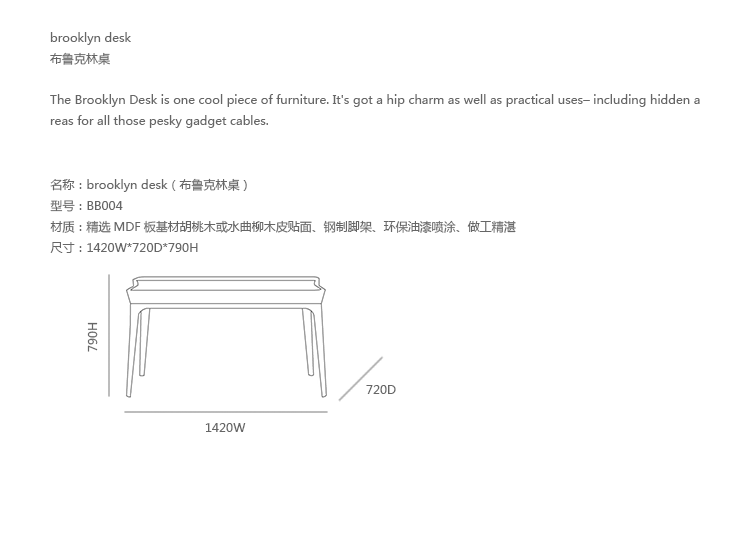 brooklyn desk(布鲁克林桌)是一件非常酷炫的安博网页版,非常迷人且具有实用性,并设置了隐藏的区域给那些令人烦恼的小工具和电缆绳线。制作采用精选MDF板基材胡桃木或水曲柳木皮贴面、钢制脚架、环保油漆喷涂,做工精湛细致,品质一流。