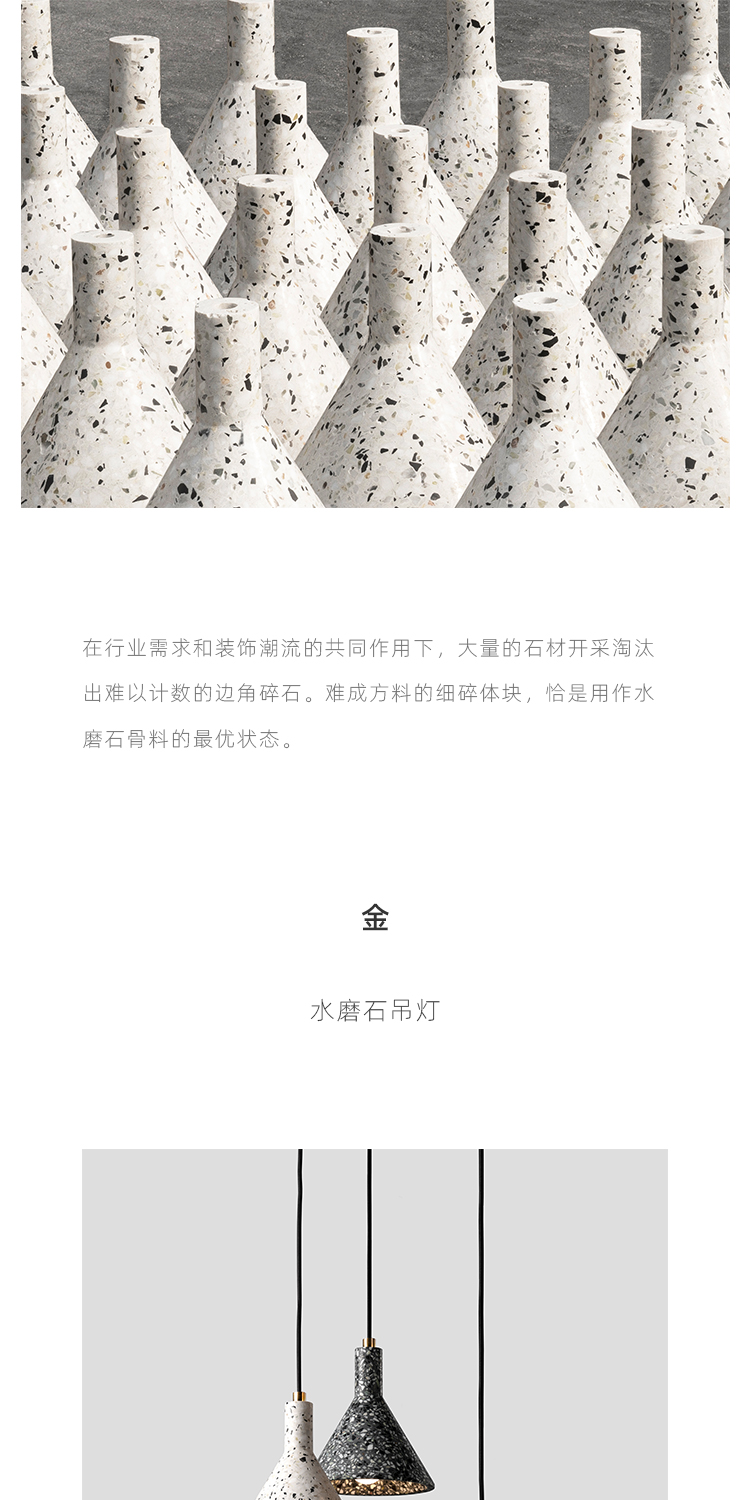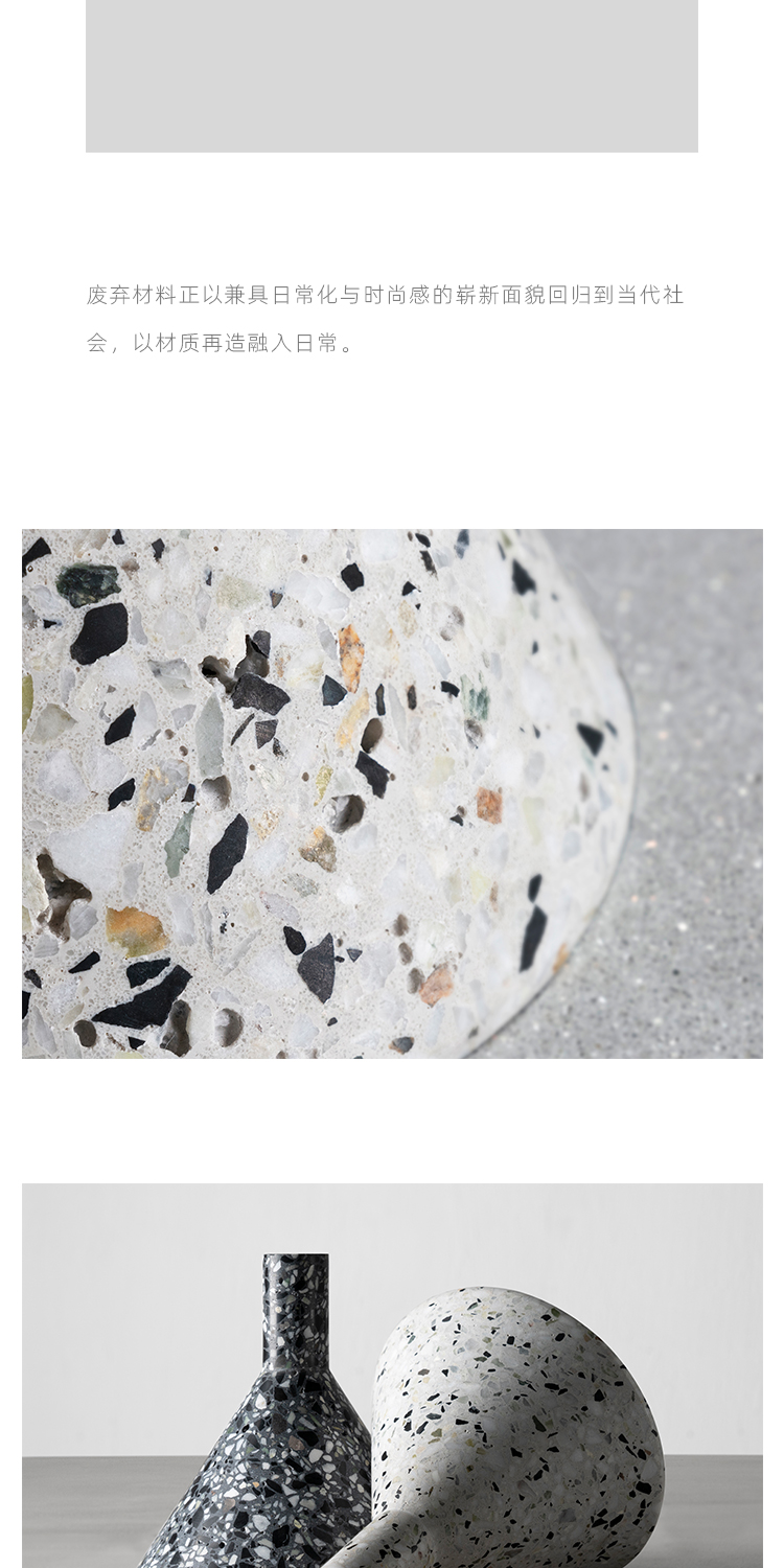 以材质再生为基本手段的水磨石系列,将陶瓷废渣再生成简洁形态的日常性安博网页版,以衍生产业的形式回归到大众层面的使用中。 中国佛山,这片拥有全球最大最成熟的陶瓷产业链和产业集群的建筑陶瓷工厂的土地,承载着每年400万吨陶瓷废弃物带来的环境污染。 以材质再生融入日常,不仅是激发商业价值的大胆尝试,是环保理念的日常化实践,更是对自我尊严的基本坚守和追求,我们探寻陶瓷跨越地域局限的一种当代突破!