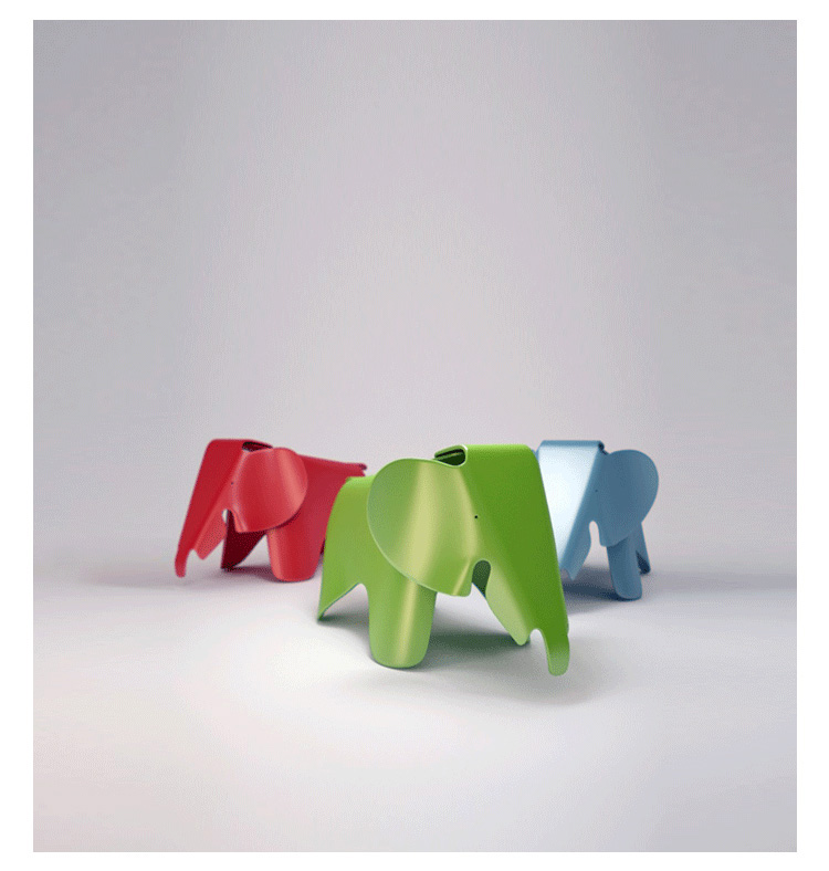 充滿童真和創意的可愛玩伴,是 Charles & Ray Eames 於1945年為女兒設計的玩具椅,由壓模合版技術製成的原型全球僅有兩張。昂貴的壓模合版製造技術始終沒有投入量產之中,直到2007年 Vitra 推出限量的 Plywood Elephant 之後,於2008年更是推出了塑膠版的大象兒童椅。材質的轉變不單迎合了設計師原本兒童玩具用途的初衷,更符合了 Charles and Ray Eames 長久以來的設計理念:「盡可能將最好的設計以最低的價錢分享給最多的人!