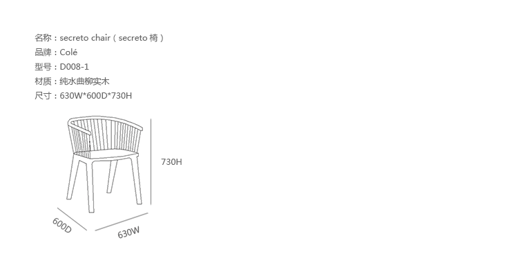 Secreto椅出自意大利设计品牌Colé,安博anbo(中国)为Lorenz*Kaz,一把同时展现现代与传统的扶手椅,Secreto椅传达了完美简洁的精髓是:“以传统工具为灵感去工作,以现代工艺品位去制作”。结构是其一个关键元素,在制造和细节上表现了其复杂性,尤其是其靠背,通过手工将每一个实木连锁杆紧紧固定在椅座上,可提供天然实木榉木,亚光漆的白色或黑色 (可按要求定做),您也可以选择舒适的纤维织物坐垫以提高舒适度。