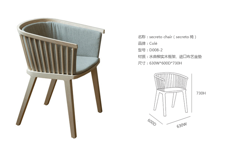 Secreto椅出自意大利设计品牌Colé,安博anbo(中国)为Lorenz*Kaz,一把同时展现现代与传统的扶手椅,Secreto椅传达了完美简洁的精髓是:“以传统工具为灵感去工作,以现代工艺品位去制作”。结构是其一个关键元素,在制造和细节上表现了其复杂性,尤其是其靠背,通过手工将每一个实木连锁杆紧紧固定在椅座上,可提供天然实木榉木,亚光漆的白色或黑色 (可按要求定做),您也可以选择舒适的纤维织物坐垫以提高舒适度。