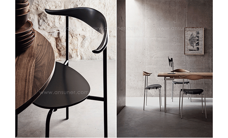 Wegner CH88 Chair,设计于1955年,不过当时没有马上生产。为了纪念大师的100年诞辰,Carl Hansen & Son公司正式启动这个项目并投入生产。蒸汽弯木技术的扶手结合椭圆木质座板以及不锈钢腿的混合材料使用使这把椅子的工业化设计感倍增。同时这把椅子也是可堆叠的,增加了多功能性。这款椅子无论外观还是实用性都做到极致,其中光洁度和框架显得多才多艺。上部结构设有蒸汽弯曲木靠背的背部支撑,靠背的两端有轻微弯曲的手臂,提供了一个自然休息的地方。钢架,直后腿,支撑一个椭圆形的木制座位。这种混合的材料,结合简约的设计,焕发出光、有机、工业的完美表达。