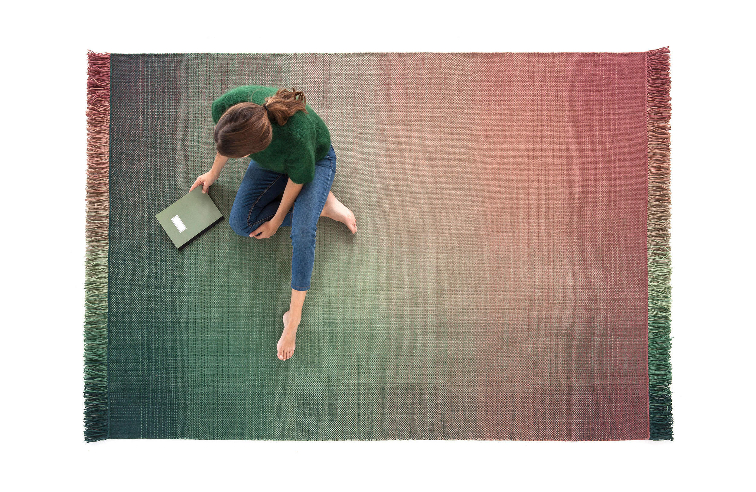 这种精致的简约风格反映了一种复杂的技术过程,以达到预期效果的密度、规律性和流动性。在同一平面上,每条地毯上都有两种渐变,一种是垂直的,一种是水平的。