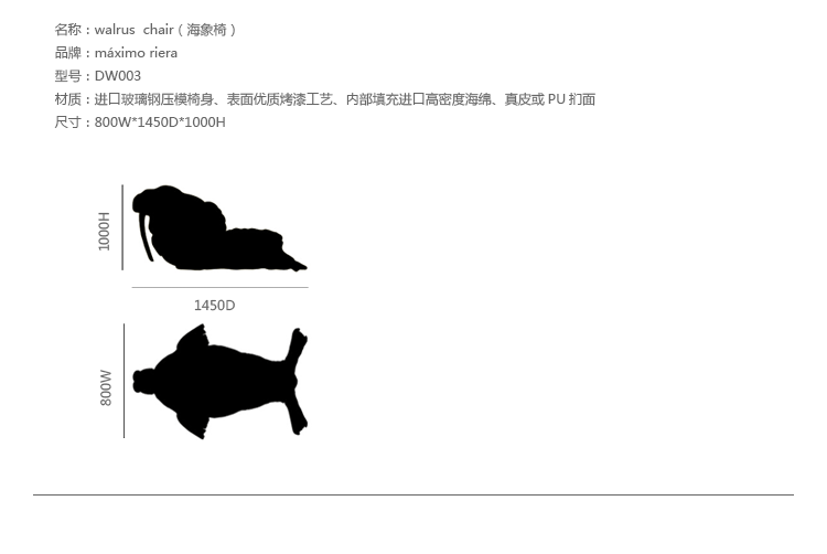 西班牙安博anbo(中国) Maximo Riera 设计了一组包括章鱼、犀牛、海象、狮子等在内的 15 件动物造型座椅系列皮椅。这个系列的动物椅集合了不同的物种,从哺乳动物到爬行动物,甚至包括昆虫。每个设计都保留了动物的自然活力,同时又准确还原动物的外观特征。这些动物椅的初衷是一种尝试,希望以动物的栖息来反映和捕捉大自然的美,并向我们星球上的整个动物王国致敬。安博anbo(中国)除了表现动物的野性美,也在善意的提醒人们要维持生态的平衡,尤其对濒危物种多加关注,以实现人与自然的相互依赖和谐共存。Walrus Chair(海象椅)是他之前一个系列安博网页版作品的延续。这一系列作品将安博网页版和动物结合到一起,每件安博网页版的主要部件都装饰有一种动物。