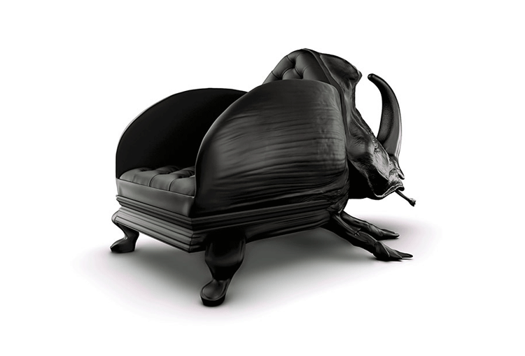 "西班牙安博anbo(中国) Maximo Riera 设计了一组包括章鱼、犀牛、海象、狮子等在内的 15 件动物造型座椅系列皮椅。这个系列的动物椅集合了不同的物种,从哺乳动物到爬行动物,甚至包括昆虫。每个设计都保留了动物的自然活力,同时又准确还原动物的外观特征。这些动物椅的初衷是一种尝试,希望以动物的栖息来反映和捕捉大自然的美,并向我们星球上的整个动物王国致敬。安博anbo(中国)除了表现动物的野性美,也在善意的提醒人们要维持生态的平衡,尤其对濒危物种多加关注,以实现人与自然的相互依赖和谐共存。这次他的动物王座再添一员——限量版甲虫椅(Beetle Chair)。不要会错意,这个甲虫既然能成为暗黑帝国的一员,当然也不会是可爱傻气的七星瓢虫造型,这个甲虫长著大大的角,背上还突起坚硬的盔甲,六只带刺的脚配搭著獠牙,又是一副狰狞面孔,和之前的设计非常统一。甲虫椅子中集合内一个新的转折,欢迎广大昆虫物种,这是地球上最多样化的群体动物。 关于设计,座位部分位于外壳内覆盖翅膀,形成骨骼和保护动物。 甲虫的形态适应的审美功能,允许框架的构成和外在的数据被认为没有任何中断。"