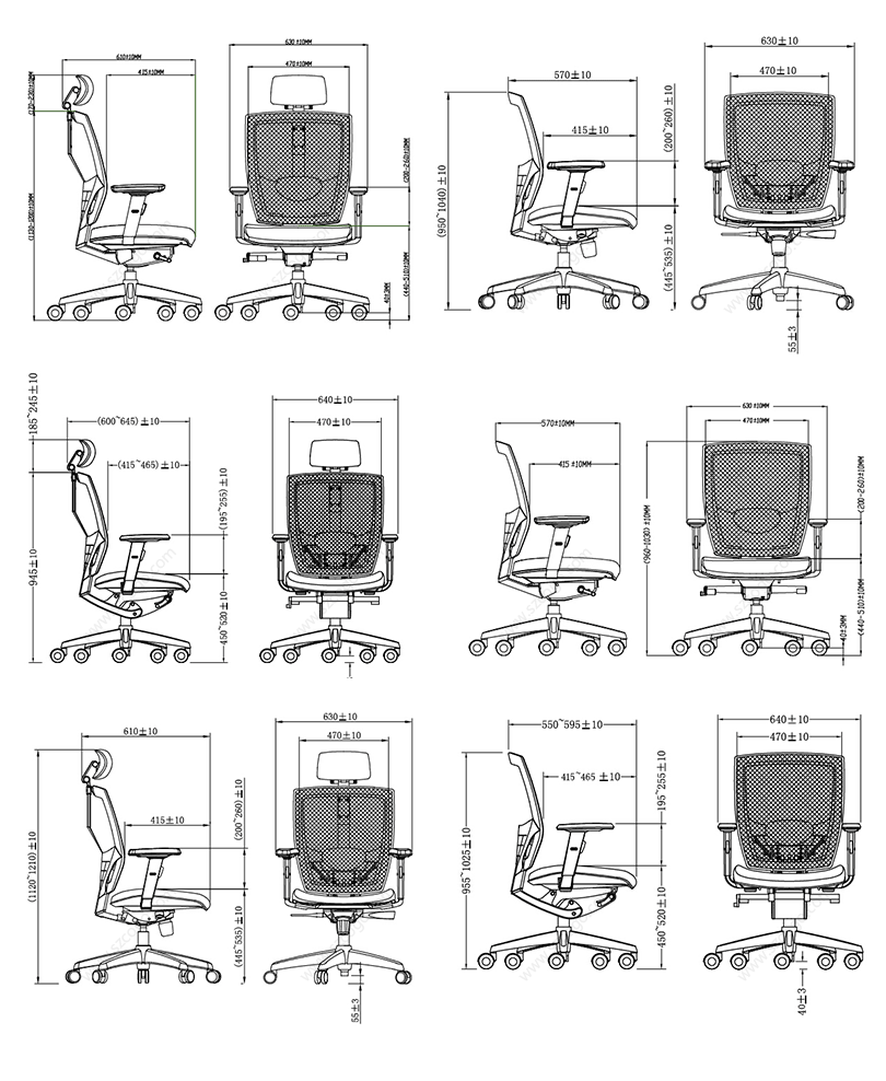 630W×570D×950-1040H