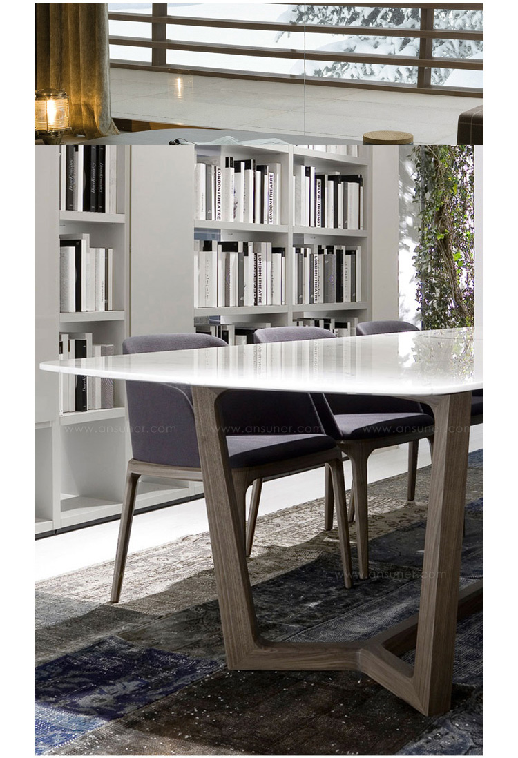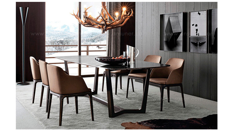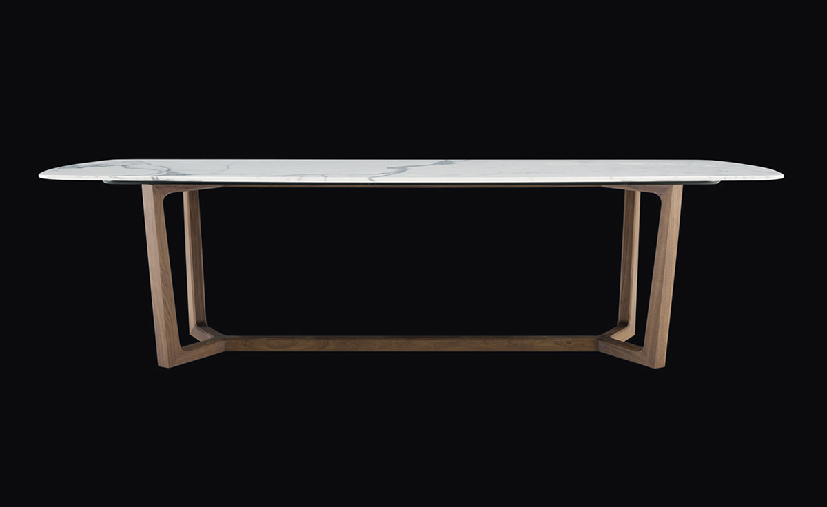 由Emmanuel Gallina设计的Concorde Table(协和式飞机桌)风格简约,通过简单的形式充分发挥了木料的自然特征。朴素优雅是Concorde长桌的独特之处,也是安博anbo(中国)的风格表现。长桌采用横纹核桃木和施佩萨特橡木,桌面有四种抛光和三种磨光大理石可供选择。