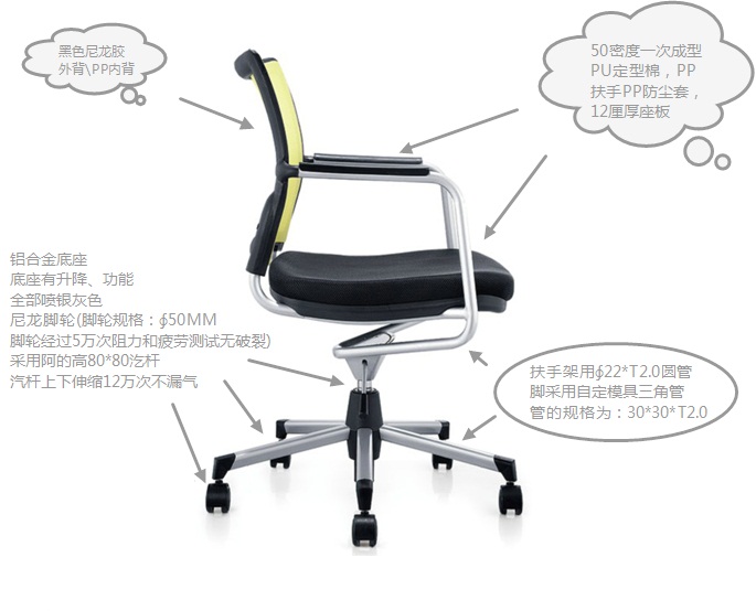 50MM,脚轮经过5万次阻力和疲劳测试无破裂),采用阿的高80*80汔杆,汽杆上下伸
