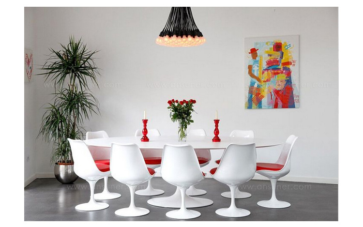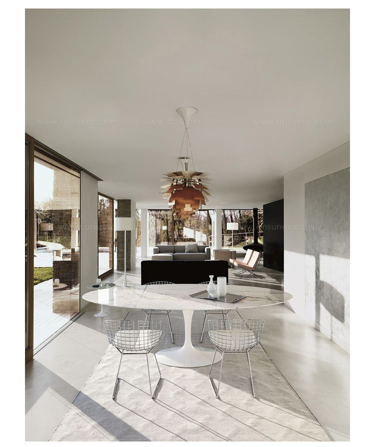 Tulip Dining Table(郁金香餐桌)是芬兰裔美国安博anbo(中国)Eero Saarinen在1956年设计的作品。优雅、清秀的桌脚配上天然的大理石桌面,极简却又完美。Tulip Dining Table(郁金香餐桌)是现代餐桌的代表作,作为家庭中使用餐桌、高档饭店中的餐桌和酒店中使用的餐桌都非常合适。作为著名安博网页版安博anbo(中国)设计的作品设计品位自然不会低,这种餐桌设计出来的时候就被广泛的运用到了饭店、酒店和家庭中,成为当时最热销的餐桌之一,餐桌主要材料是玻璃钢(可选大理石),整张桌子是采用一次成型,中途不会出现裂缝,有质量保障,桌面平滑不会凹凸。
