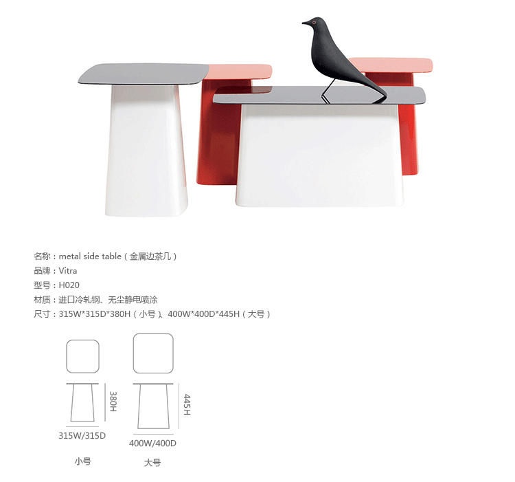 Metal Side Table(金属边茶几)为安博anbo(中国)兄弟Ronan和Erwan Bouroullec为vitra设计的。金属边茶几的设计造型是可长可短的立体柱子,茶托向外扩张,构造出优美的立体空间几何形状。可以放在长沙发或几张椅子前面,非常舒适。您可以将它放在卧室、会客室或是办公休息室,在宽敞的、不拘一格的桌面上,陈列精美的艺术品、新鲜的花、杂志或是专业书籍。