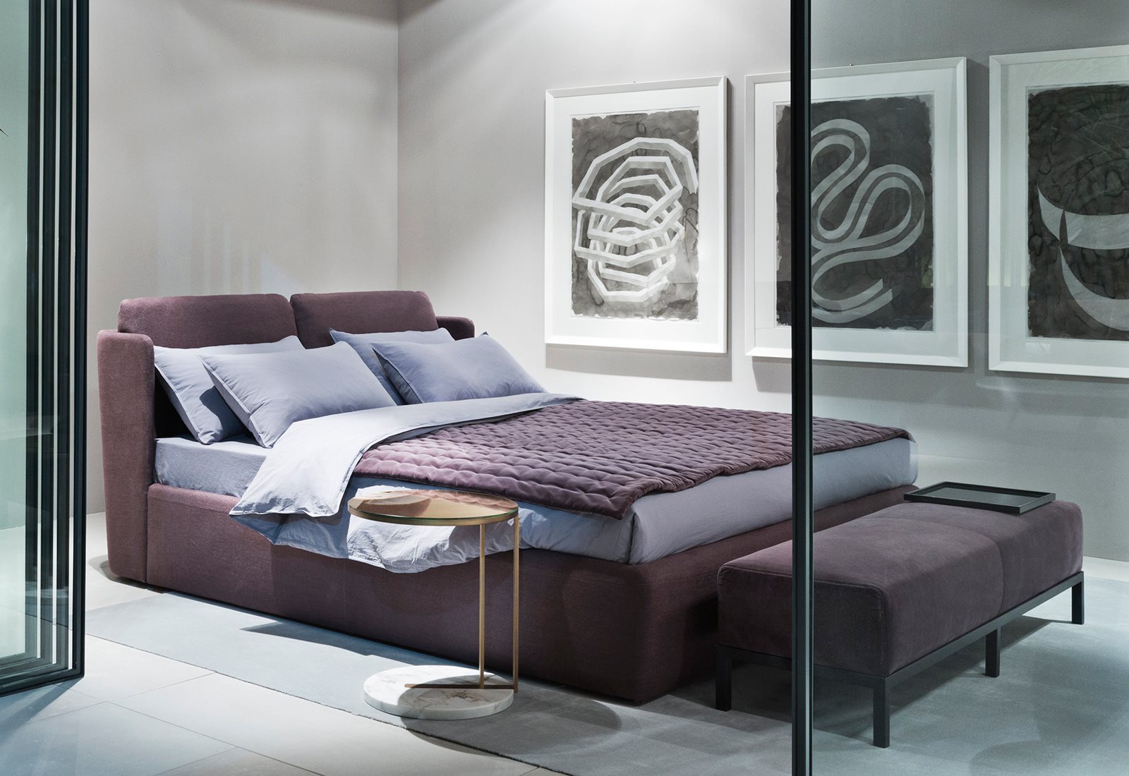 各种大理石茶几与基岩层或饰面漆木、青铜镜。