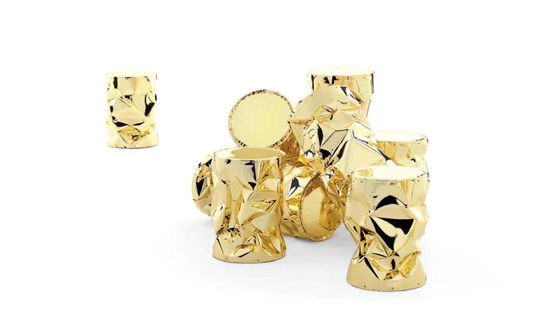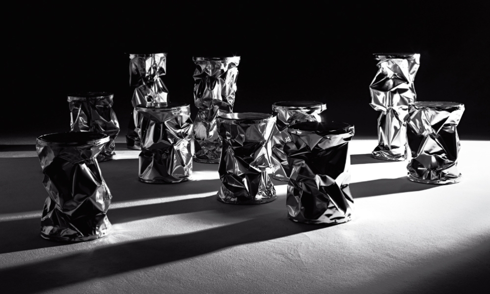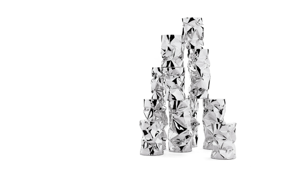 folded aluminium.The reflecting surface is presented INA singular.The coffee table