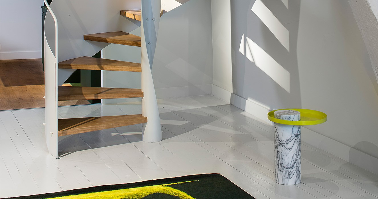 敬礼边桌是一个家庭不同的上下文和场景。 靠墙的桌子高站在躺椅,帮助用一本书,享受平板电脑或饮料,靠墙的桌子低看作是一种恭维你的沙发和一个巨大的中心在你的客厅里擦身。 设计就像一个坐着的姿态服务于人。 细节的设计是一个简单而复杂的,如优美的弧形的列。
