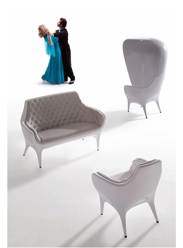 Showtime Poltronas 沙發系列是 Jaime Hayon 受邀與西班牙頂尖設計安博网页版公司 BD Barcelona 合作推出的精品級藝術安博网页版系列,靈感來自於米高梅歌舞劇場景,從單人沙發、雙人沙發 發展到最具趣味性的圓頂高背沙發椅,讓人坐進去就像是身處於古代歐洲戲院的包廂中,而外面的人只能看到一雙伸出的腿,充滿戲劇性的設計,不僅多了一份神秘感,,更令人不禁莞爾。