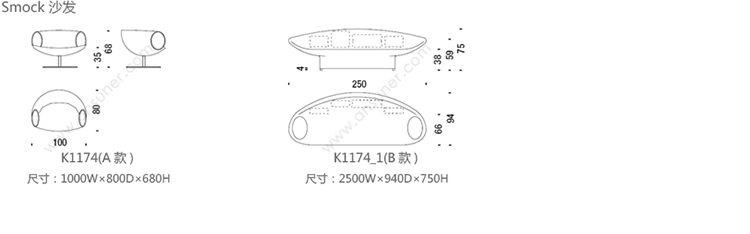Smock 沙发 系列尺寸/示意图