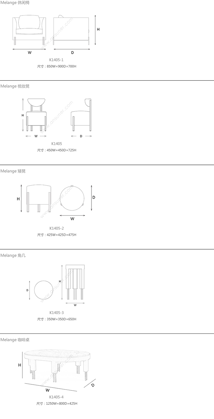 Melange 休闲椅 系列尺寸/示意图